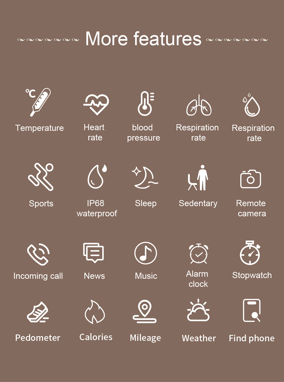 Модель продукта F80 Мастер чип Nordic52832 "Температура Датчик "CT1711 массив Чип PPG SLR7R30 Virbation Loundspeaker Mute/Vibration Уровень водонепроницаемости IP68 Совместимая система Android 4,4 и выше, iOS 8,2 и выше Особенности женского здоровья (физиологический цикл), полный круг Полный сенсорный экран, температура тела, частота дыхания, Функции по уходу могут передавать данные в реальном времени с семьями Основная особенность женского здоровья (физиологический цикл), полный круг Полный сенсорный экран, Динамический интерфейс, мониторинг температуры тела, мониторинг кислорода в крови, частота дыхания, Мониторинг Артериального давления. Функция упражнений: количество шагов/калорий/расстояние, Мульти спортивный режим. Мониторинг сердечного ритма, мониторинг артериального давления и другие функции здравоохранения функция удаленного ухода металлический ремешок, магнитный ремешок, напоминание о звонках, оповещение о сообщениях Другие функции «шаг, калории, расстояние, монитор сна, спорт, напоминание о звонке, напоминание о тревоге, поднимите руку, часы, зажигалка, соц. Поделиться (wechat, QQ, Facebook, Twitter, Встряхните руку, чтобы взять фонто"
