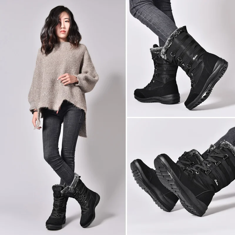 STS/Женские повседневные зимние ботинки; Водонепроницаемая зимняя обувь; Женские Теплые ботильоны на платформе с меховым каблуком; Уличная обувь