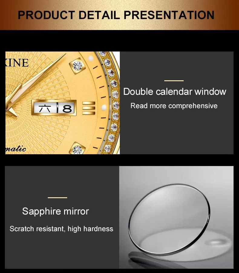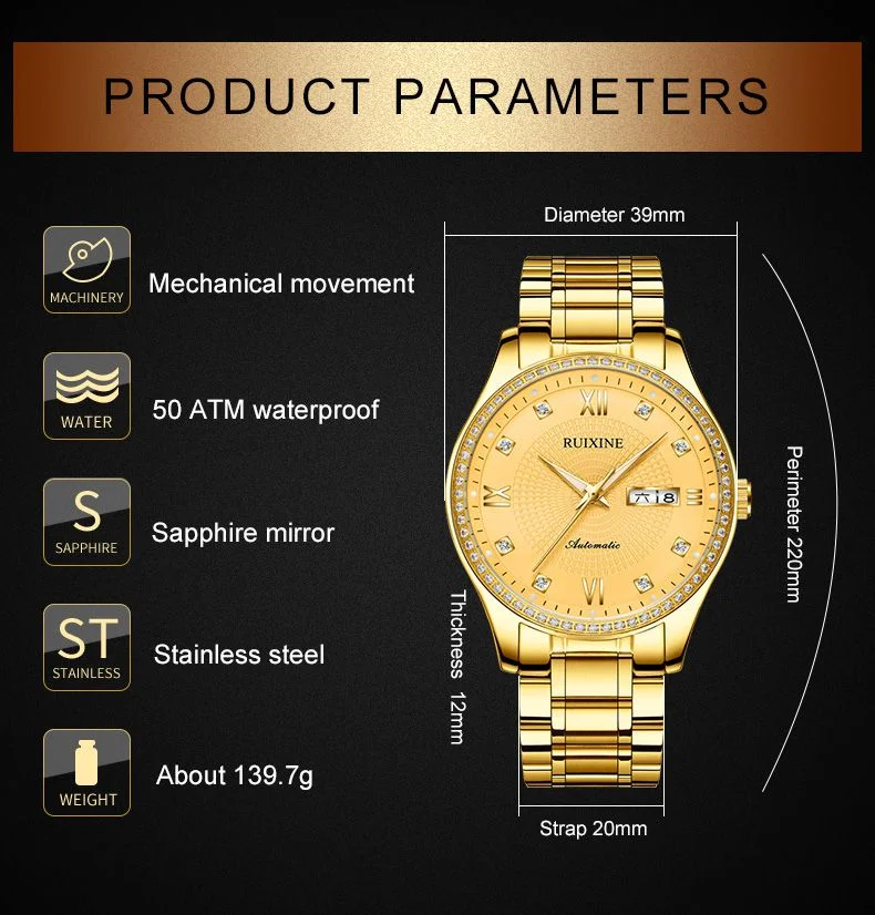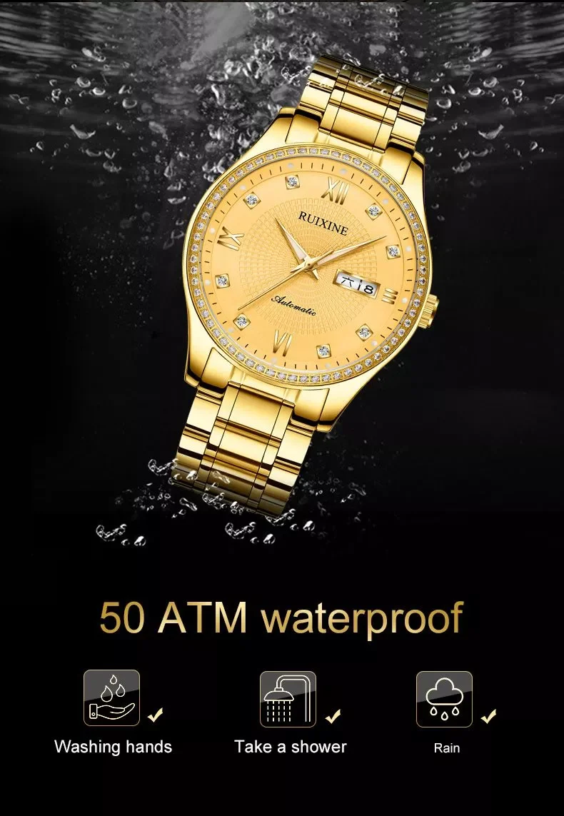 Золотые бриллиантовые механические мужские часы, классические роскошные Брендовые Часы, 100 м, водонепроницаемые автоматические часы с самозаводом, Relogio Masculino