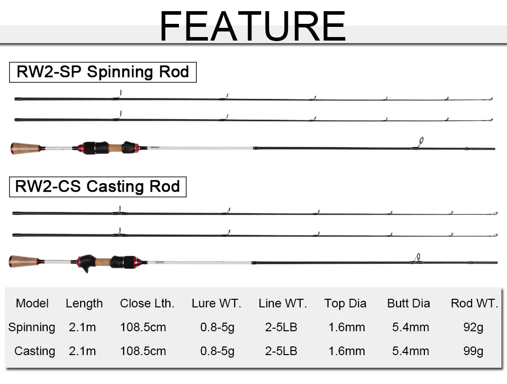 Новый палисандр с высоким содержанием углерода 2,1 м UL Мощность Двойные наконечники форель стержень приманка Вес 0,8-5G спиннинг и литейный стержень тростника Полюс