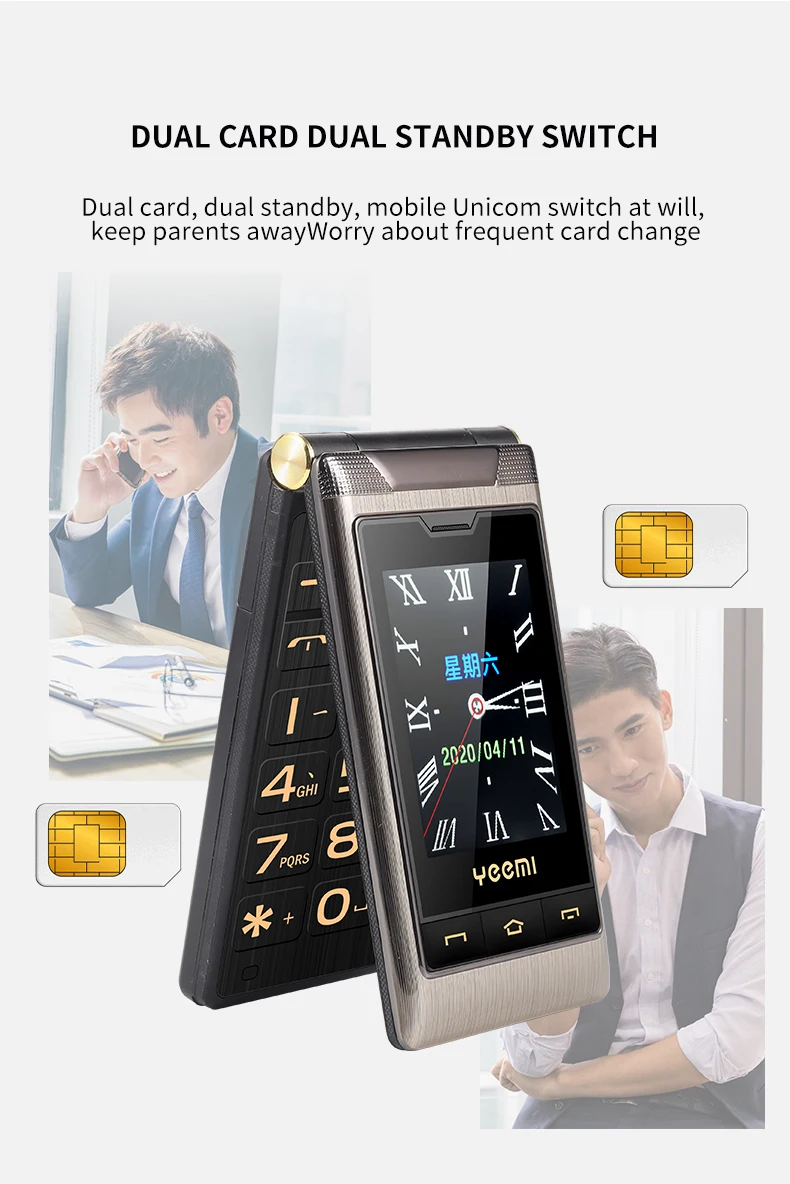 Yeemi G10-1, Подарочная кожаная сумка, двойной дисплей, две sim-карты, 5900 мАч, флип, мобильный телефон, большая клавиатура, большой голос, большой шрифт, для пожилых людей