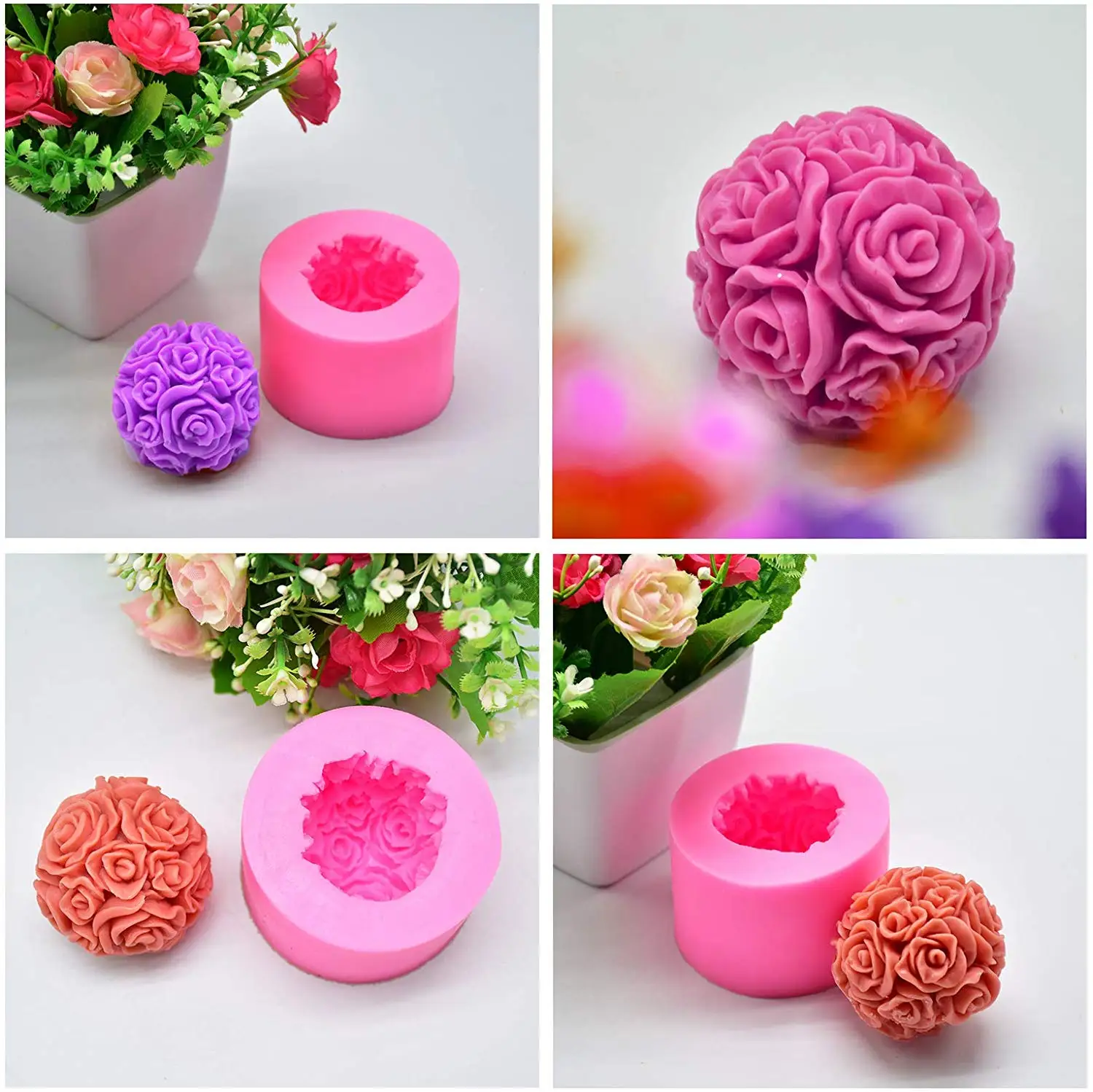 Формы для свечей 3D Силиконовая Роза цилиндрической формы и сферы формы цветок формы для мыла глина свеча Изготовление DIY домашний 1. Размеры пресс-форм и готовой продукции: см. Изображение. 2. Очень легко снять. После того, как он полностью drys, просто нажмите снизу, а затем вытяните свечу. 3. Легко использовать для изготовления свечей-просто налейте плавящий жидкий воск и установите фитиль в форму и подождите холодного процесса. 4. Форма изготовлена из пищевого силикона, очень гибкая и Нетоксичная, легко моется, может использоваться в духовке, посудомоечной машине, холодильнике и т. д. 5. Форма для изготовления свечей очень универсальна, в дополнение к форме свечи или мыла, она также может использоваться в качестве торта, шоколада, конфет, смолы или использоваться для самодельных проектов.