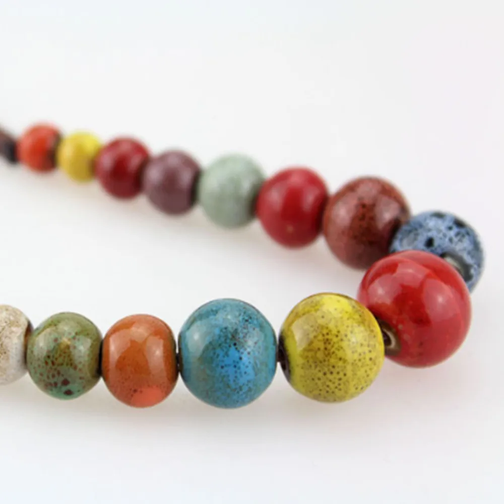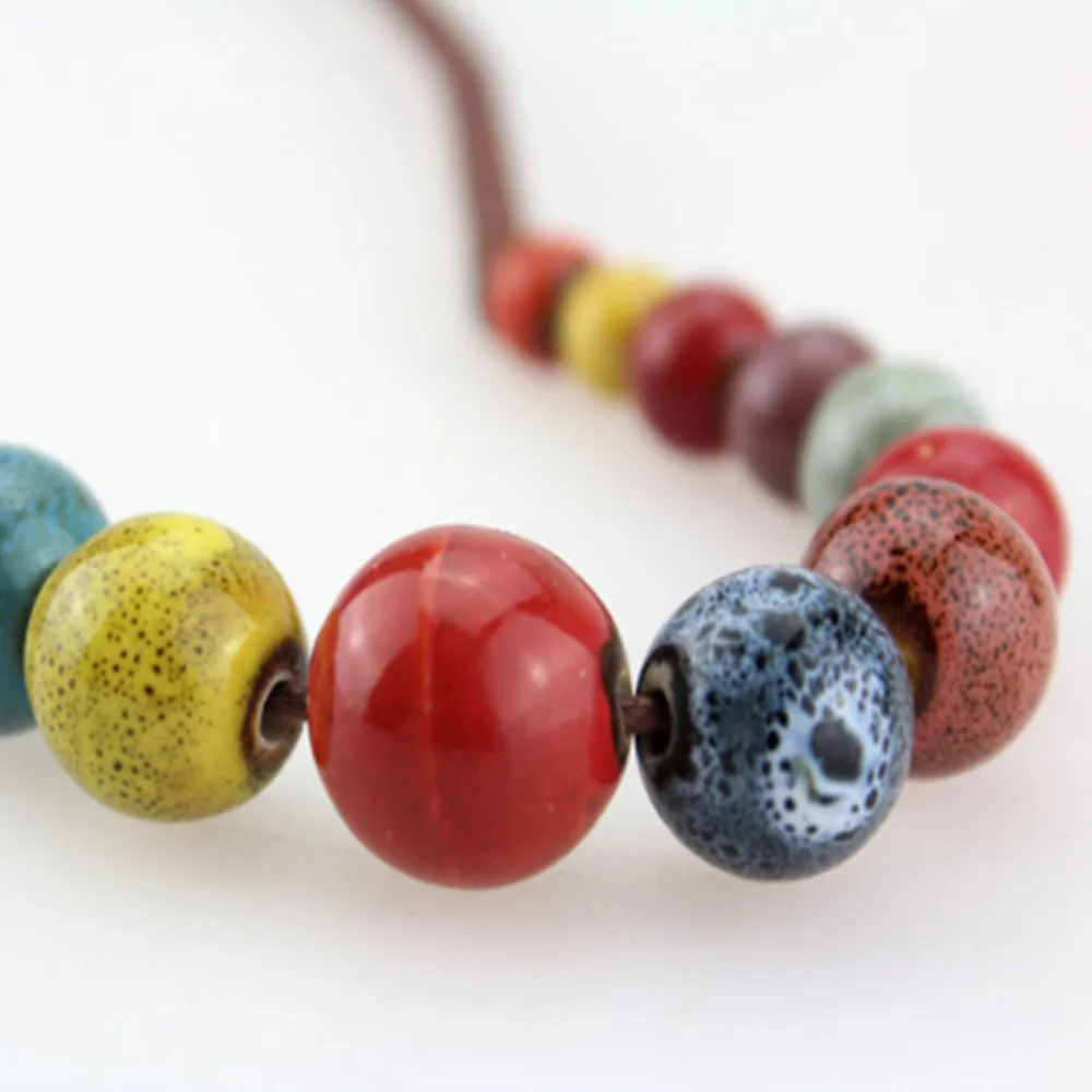 Ретро этнический стиль ручной работы керамический бисер Кулон Свитер Цепочка, короткое ожерелье N360