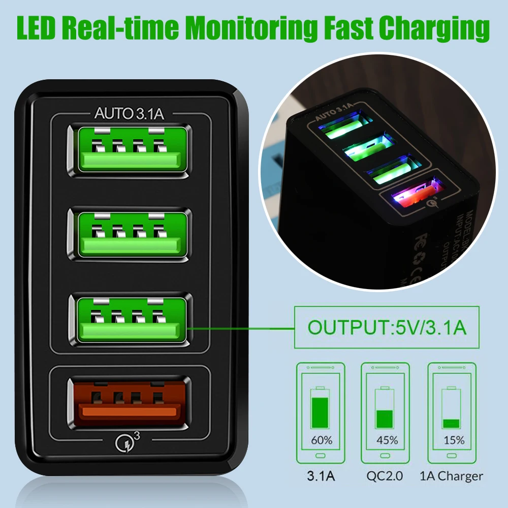 1 шт. 4 Мульти-порта QC 3,0 Быстрая быстрая зарядка 4 USB концентратор настенное зарядное устройство адаптер Великобритания США ЕС вилка для iPhone Samsung с USB портом
