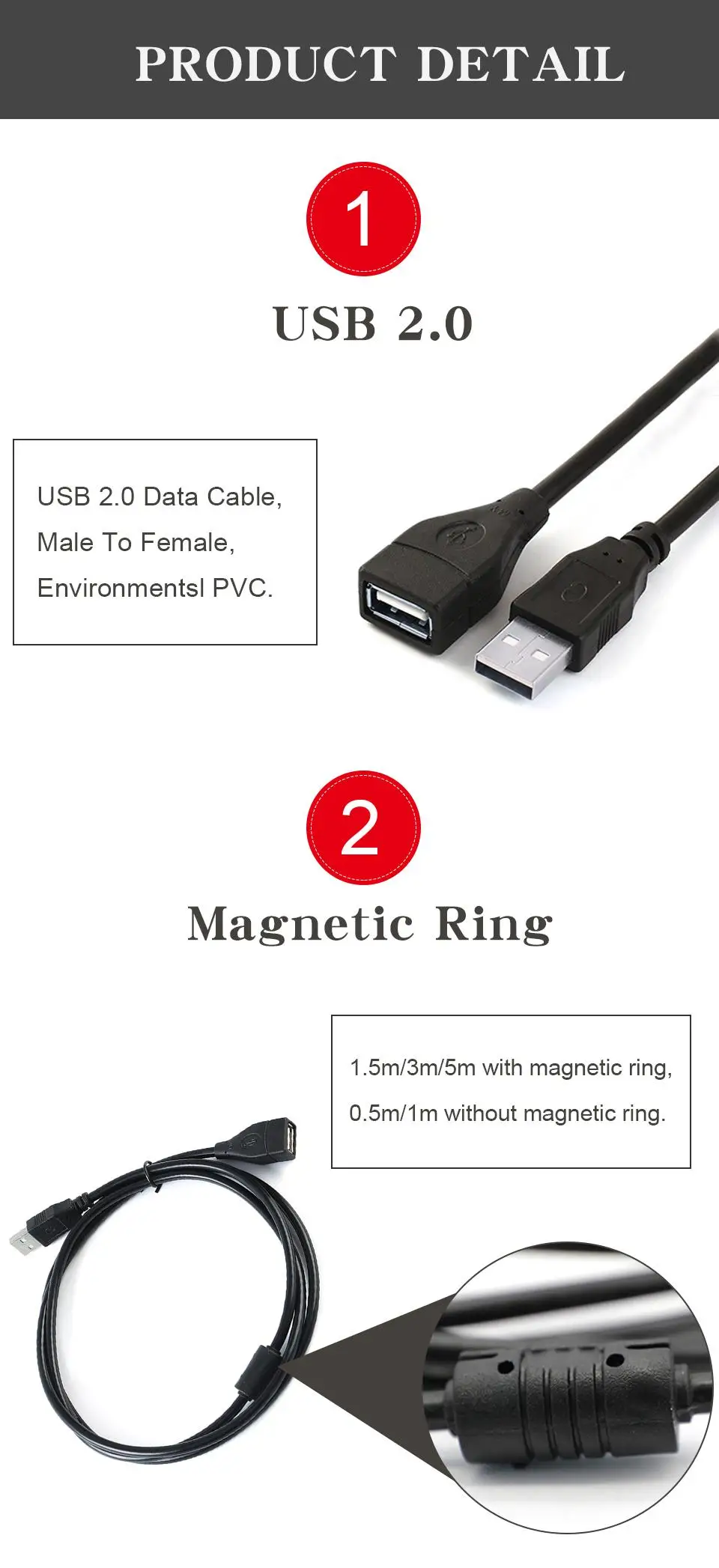 Кабель USB extendsion для решения проблемы пользователей рабочего стола подключите все в рабочем столе Поддержка нескольких устройств, Зарядка телефона может быть расширена для поддержки подключения u-диска, клавиатуры, мыши, картридеров, принтеров, камеры, мобильный жесткий диск для расширения использования компьютеров. С магнитным кольцом магнитное кольцо играет роль анти-электромагнитных помех для уменьшения потери передачи. Характеристика: 1. Никелевая вилка высокой чистоты, уменьшает потерю данных, сигнал об ошибке; 2.USB женский универсальный дизайн, анти-окисление, анти-помехи, многослойное экранирование; 3. Пробка используется 24 часа солевой спрей тест (никель), улучшить продукт анти-солевой спрей коррозионной стойкости, увеличить срок службы продукта; 4. Проводник провода с высококачественной бескислородной медью, Увеличьте Поверхность передачи сигнала продукта, увеличьте срок службы изделия; 5. Поддержка мульти-операционная система, совместимость на уровне систем: Windows8 / 7/10 / Vista / XP / 2008/2003/2000/98 / Mac OS/Linux Примечание: 1,5 m/3m/5m с экранированием, 0,5 м/1 м без экранирование с магнитным кольцом, эффективной защиты от помех, масло трансмиссии, становится все более стабильным.