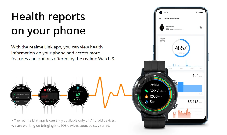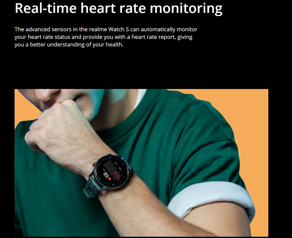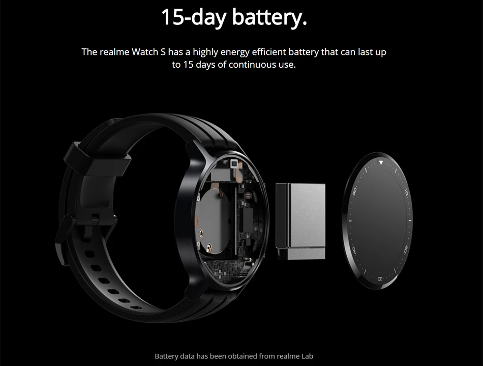 · Теоретические данные о батареях поступают из realme lab. Фактический срок службы батареи может незначительно отличаться из-за различных привычек пользователя. Типичные условия тестирования: Включите круглосуточное Обнаружение пульса, поднимите запястье и светильник йте экран 80 раз в день, Синхронизируйте данные с приложением realme link 5 раз в день, уведомление о звонке 20 раз (Повесьте трубку после ожидания 10 секунд), уведомления о сообщениях 100 раз и будильник 2 раза.