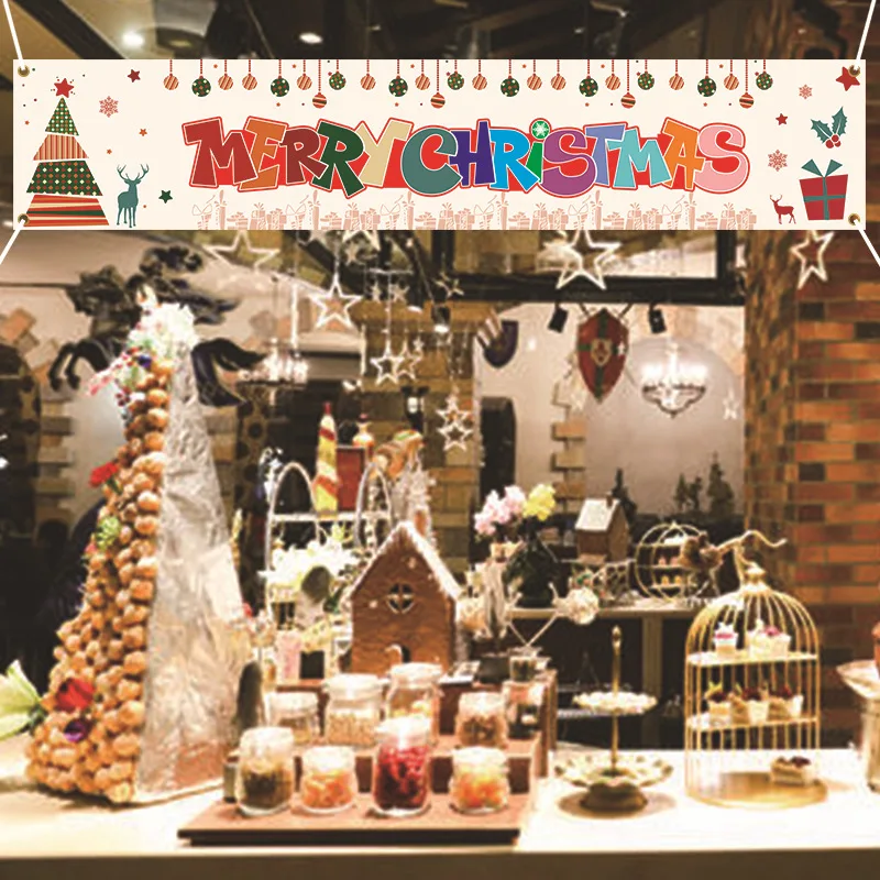 3. Рождество лозунг баннер имеет яркие цвета, без химического запаха и атмосферостойкие характеристики, и может быть использован в помещении и на открытом воздухе.