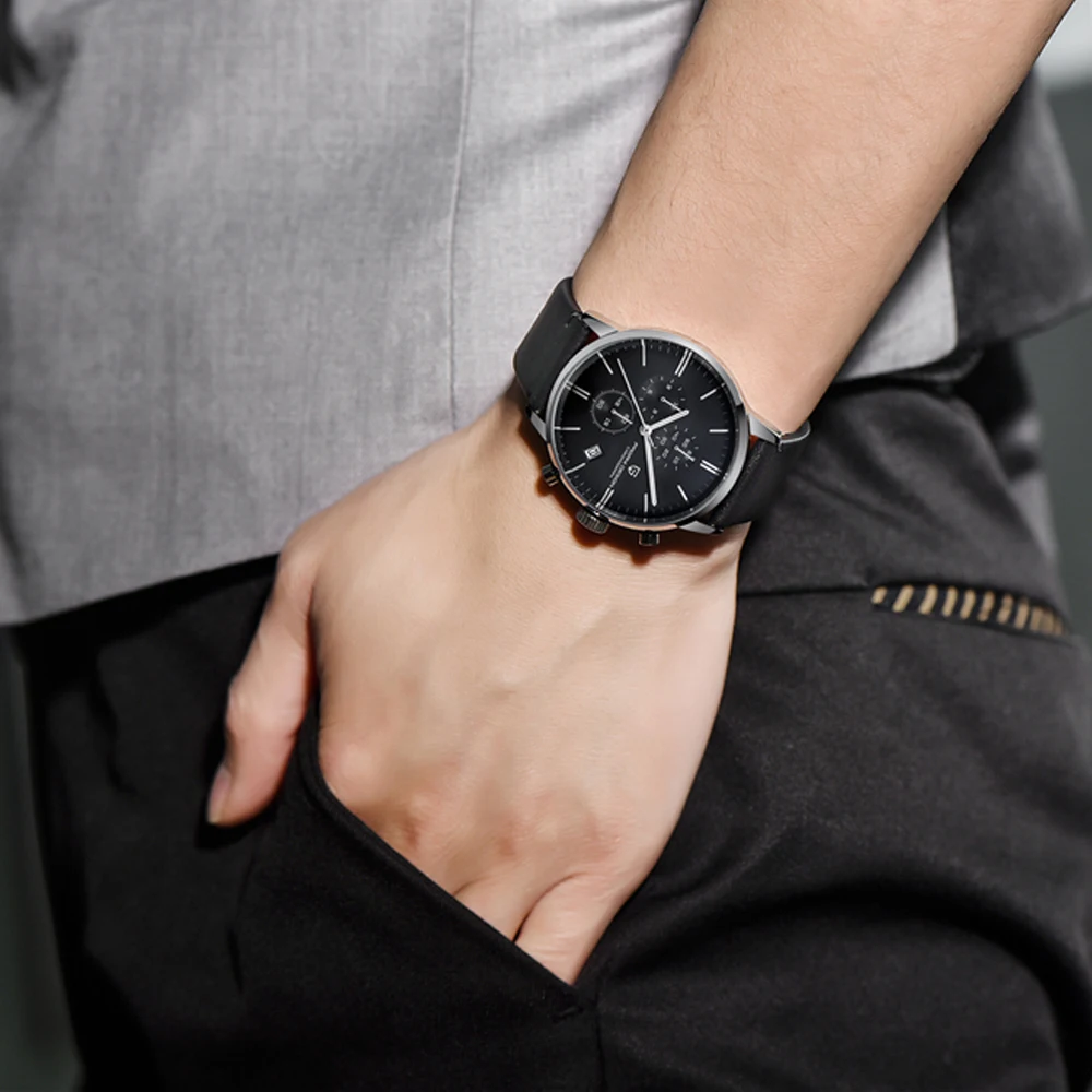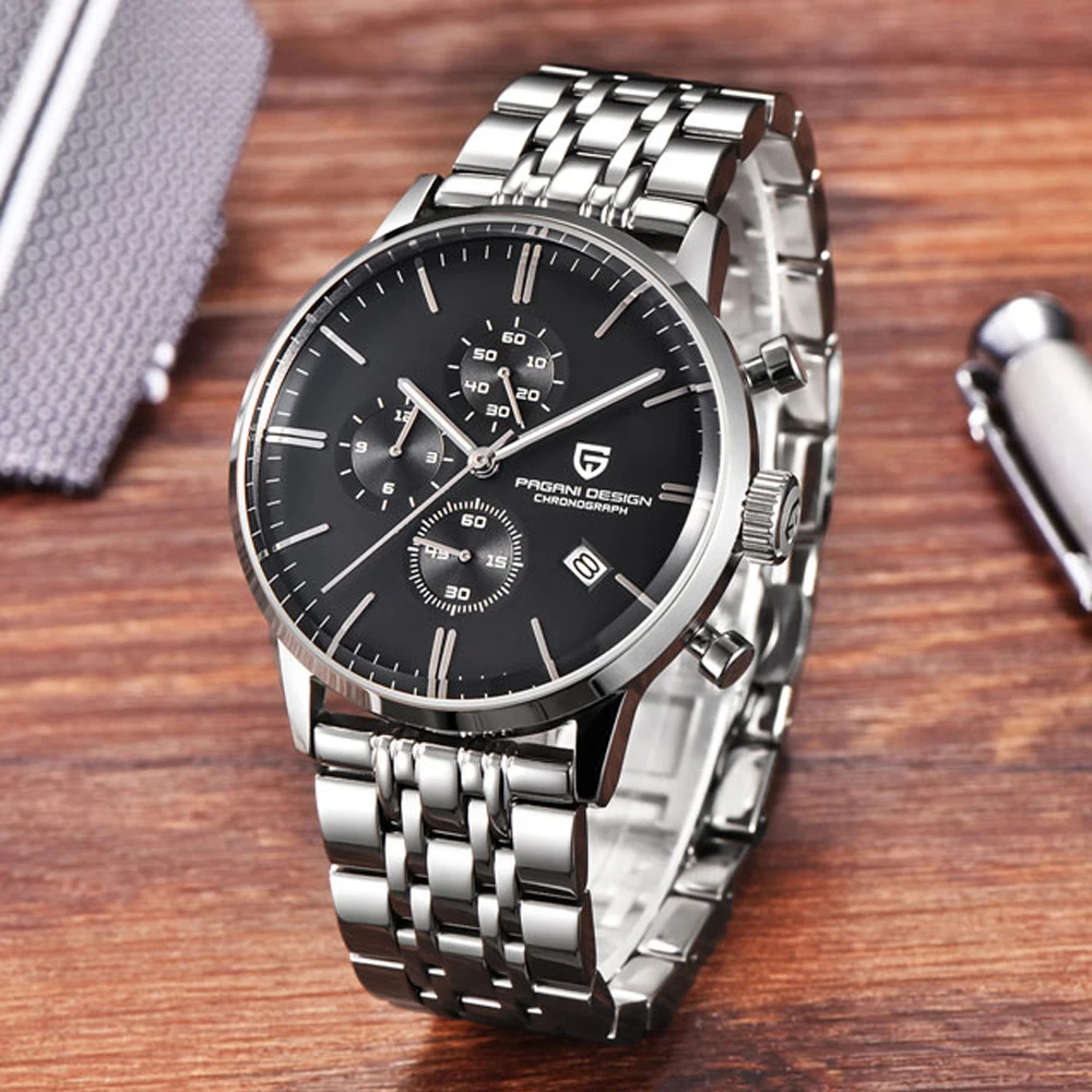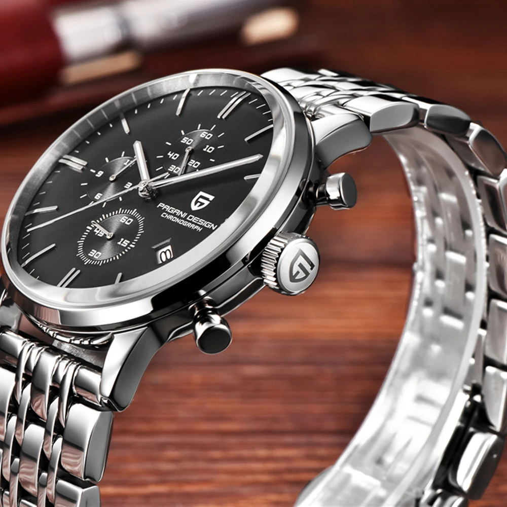 Описание: > Механизм: японский кварцевый механизм VK67 > Циферблат: черный/серебристый циферблат > Материал корпуса: корпус из нержавеющей стали 316L. > Задняя часть корпуса: стеклянная задняя крышка > Диаметр корпуса: 46,5 мм без короны > Толщина корпуса: 12,8 мм > Ширина ремешка: 22 мм > Браслет: браслет из нержавеющей стали со складной застежкой > Стекло: специальное устойчивое к царапинам минеральное стекло > Класс водонепроницаемости: 3ATM > Функция: Индикатор Даты в положении 4 часа; Часы хронографа в положении 9 часов. Минутный хронограф в положении 12 часов. Второй Циферблат в положении 6 часов Кнопка стопа в положении «2 часа» корпуса; Кнопка сброса в положении 4 часа