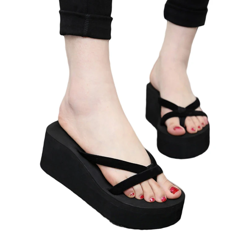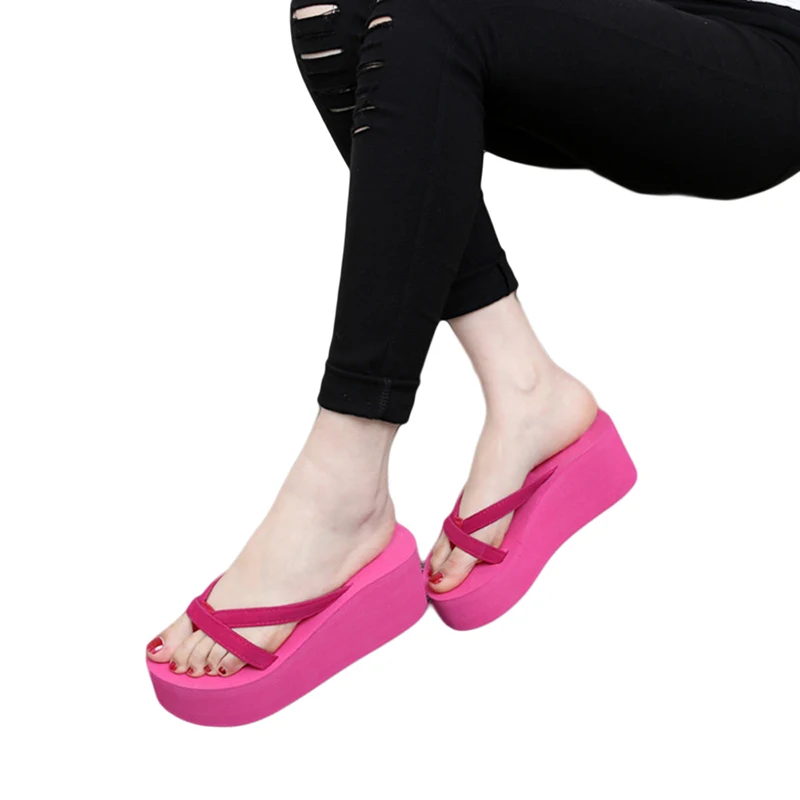 Женская обувь; Женские летние модные шлепанцы въетнамки; Пляжная обувь на танкетке; Обувь на толстом каблуке; Прямая поставка; Тапочки для ванной