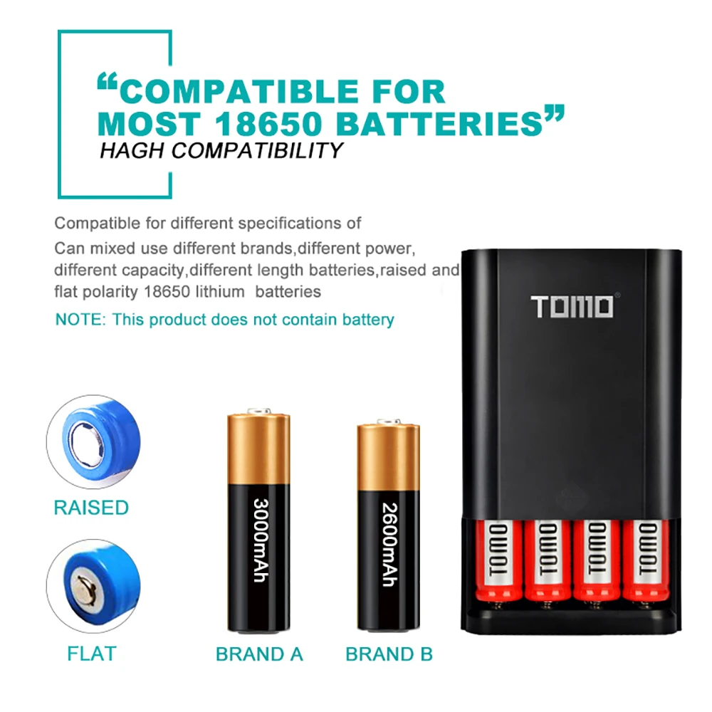 Портативный внешний источник питания, обеспечивает достаточную мощность для4 литий-ионных аккумулятора 18650.