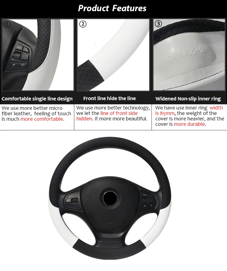 1. Состояние: 100% Dermay Новый 2. Материал: кожа из микроволокна и белое внутреннее кольцо 3. Цвет: черный, белый, желтый, фиолетовый, коричневый, синий, красный 4. Функции: воздухопроницаемость, сохранение сухости, защита от скольжения, роскошный эргономичный дизайн, можно использовать четыре сезона. 5. Выбор диаметра: для Opel Astra
