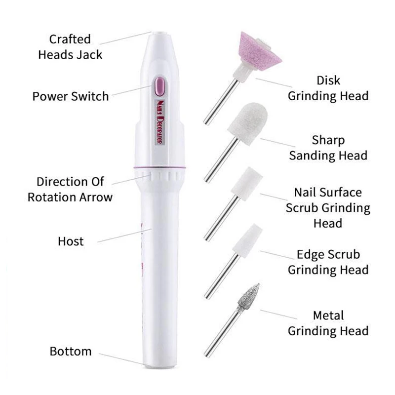 Многофункциональные и сменные шлифовальные головки: Этот набор для маникюра и педикюра включает в себя 5 типов сверл, каждый из которых предназначен для различных целей-файл, файл, точить, полировать, полируйте как профессионал и Очистите ногти! Удовлетворить ваши различные потребности и сделать ваши ногти более красивыми.