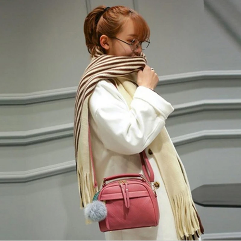 Женская Повседневная Сумка-тоут, женская большая сумка через плечо, сумка-мессенджер, Высококачественная сумка из искусственной кожи с меховым помпоном, bolsa