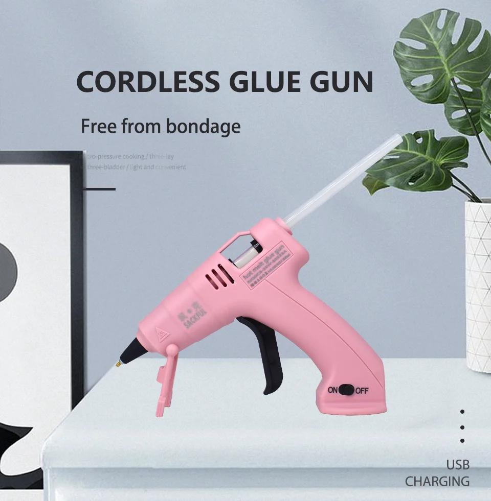 【SAFE AND EFFICIENT GLUE GUN 】With High - Tech Electronic PTC heating technology,inside place the fuse,it's heating very fast and automatic of control temperature. Rechargeable design, USB electrical interface, convenient and fast ,that meet well your demand.