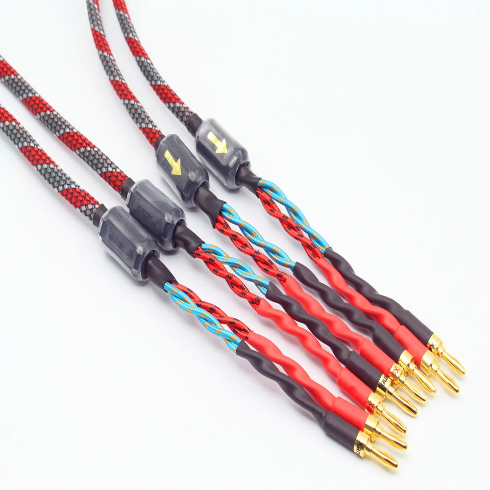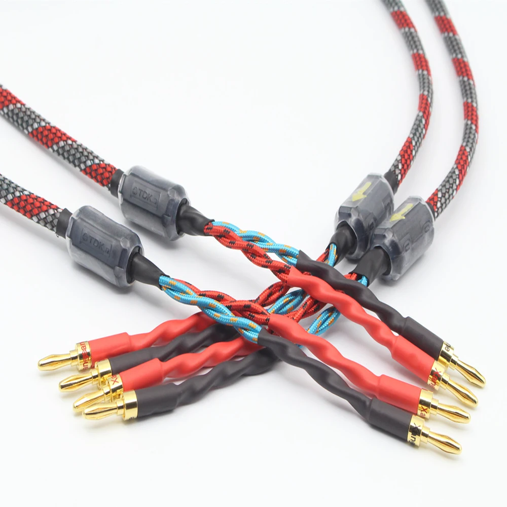 Одна пара, бескислородный медный аудиокабель для динамика, высококачественный усилитель Hi-Fi, кабель для динамика, кабель с банановой головкой