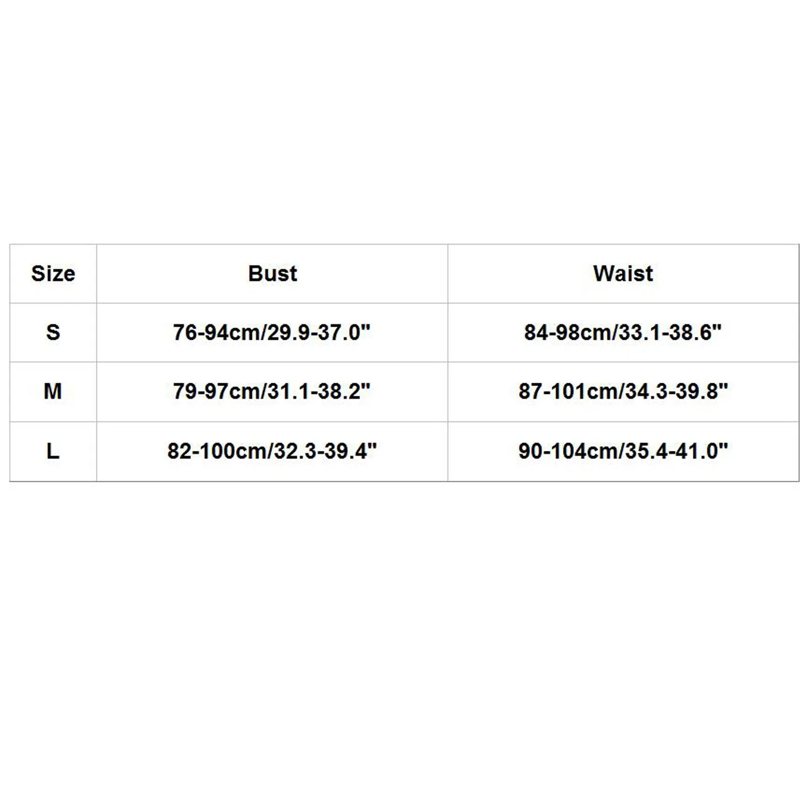 Size Bust Waist S 76-94cm/29.9-37.0" 84-98cm/33.1-38.6" M 79-97cm/31.1-38.2" 87-101cm/34.3-39.8" L 82-100cm/32.3-39.4" 90-104cm/35.4-41.0"