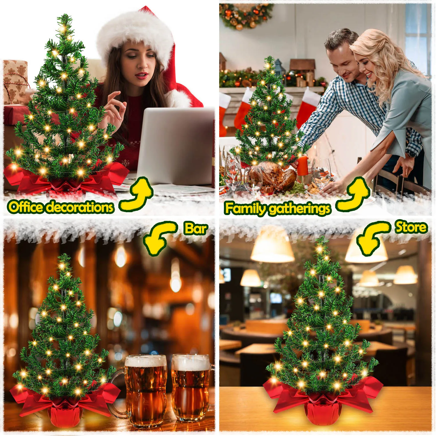 Идеальный размер:Высота 60 см/24 дюйма, вы можете разместить елку на столе, подоконнике, полке, прилавке или любом другом углу, как для внутреннего, так и для наружного использования.