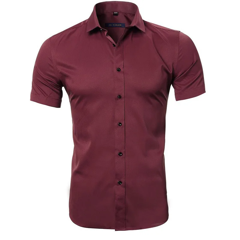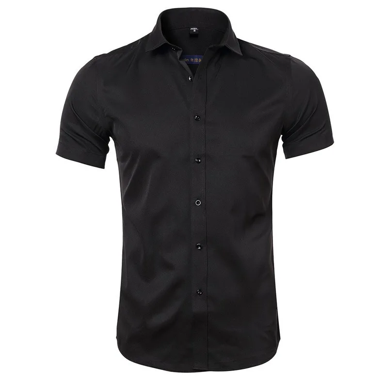 4. Облегающий крой/короткий рукав/однотонный/Повседневный на пуговицах/эластичная ткань; Стирка 200 раз без деформации