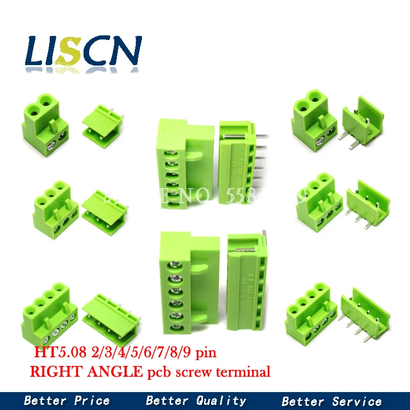 10 комплектов HT5.08 2/3/4/5/6/7/8/9 pin правый угол pcb винтовой клеммный блок разъем 5,08 мм шаг + прямой штыревой разъем