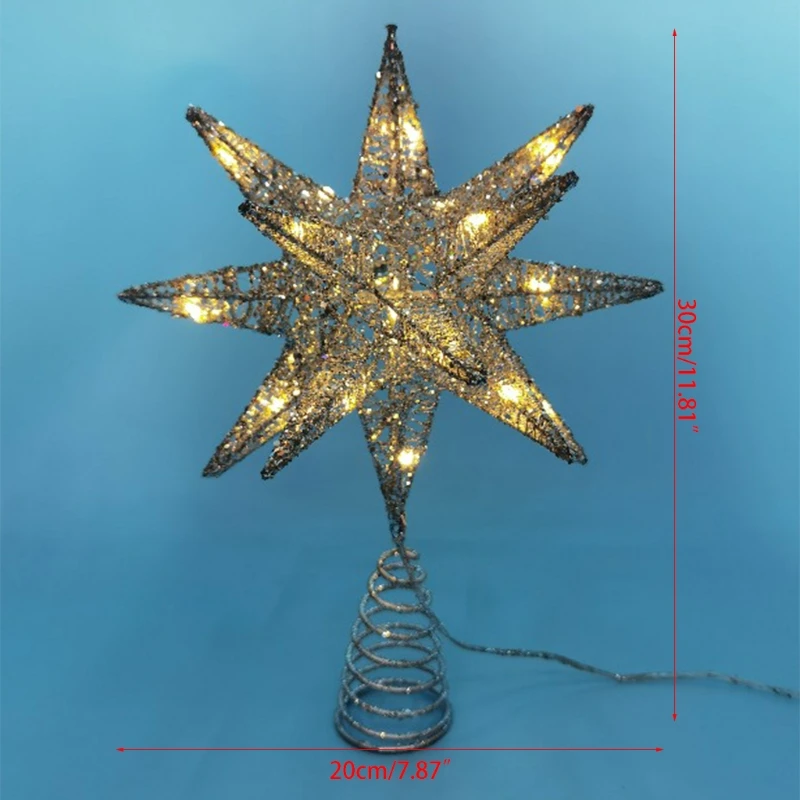 Этот светодиодный светильник-звезда-это уникальный и простой способ украсить вашу елку шикарным дизайном. Изготовленная из золотистой железной проволоки, звезда имеет замысловатый поворотный дизайн по всей своей форме. Легко установить на трость и светильник, чтобы создать теплую и счастливую атмосферу праздника.