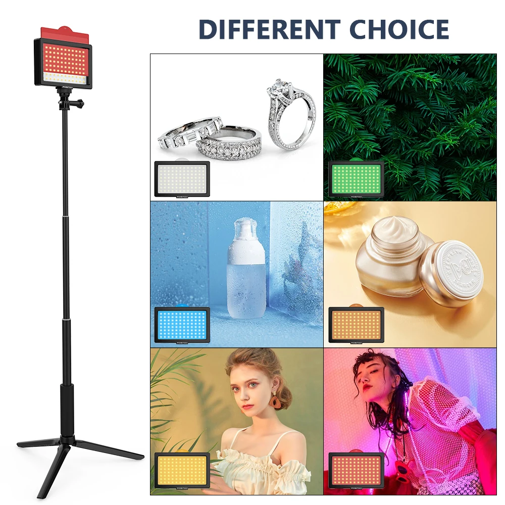 3. Свободно вращается. Светильник с регулируемой высотой от 21,06 до 38,07 дюймов. С мини шаровой головкой, этот вид видео светильник позволяет свободно вращаться на 180 °. Наш кольцевой светильник на YouTube идеально подходит для видеосъемки на YouTube, портретной съемки, макросъемки, интервью или ENG светильник на месте или в студии.