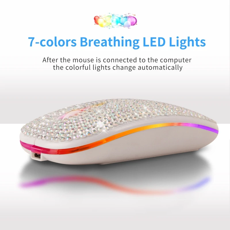 Особенности: Украшенные стразами Беспроводной Мышь 2,4 ГГц Беспроводной Подключение (usb-приемник), подходит для ПК, ноутбука, настольного компьютера, компьютер с четырехъядерным процессором USB порт, в том числе с синий зуб 5,0 Мышь функция для портативных ПК и многое другое. Эта мышь, безусловно, выделяется из всех других простых, простых. Она покрыта высокого качества Стразы, которые приклеены с высокой точностью и уход. Это даст Вам ультра сверкающий b-ling, который вы хотите, и все в офисе захотят знать, откуда вы его получили. Перезаряжаемая: Встроенная перезаряжаемая батарея, высокое разрешение: Max1600 DPI высокое разрешение для подвижной жидкости, двойной режим: Blue-tooth + 2,4G wireless Хорошо совместим с Windows XP, Vista, 7, 8 и 10 / Windows Vista/Windows ME и т. д. подходит для настольных компьютеров, ноутбуков, ПК, Macbook и других устройств. Характеристики: Материал: пластик Цвет: розовый, серебристый (по желанию) Размер: 113x60x20мм DPI: 800-1200-1600 dpi. Посылка включает в себя: 1 х Беспроводная мышь двойного режима 1 usb-приемник 1 х USB кабель