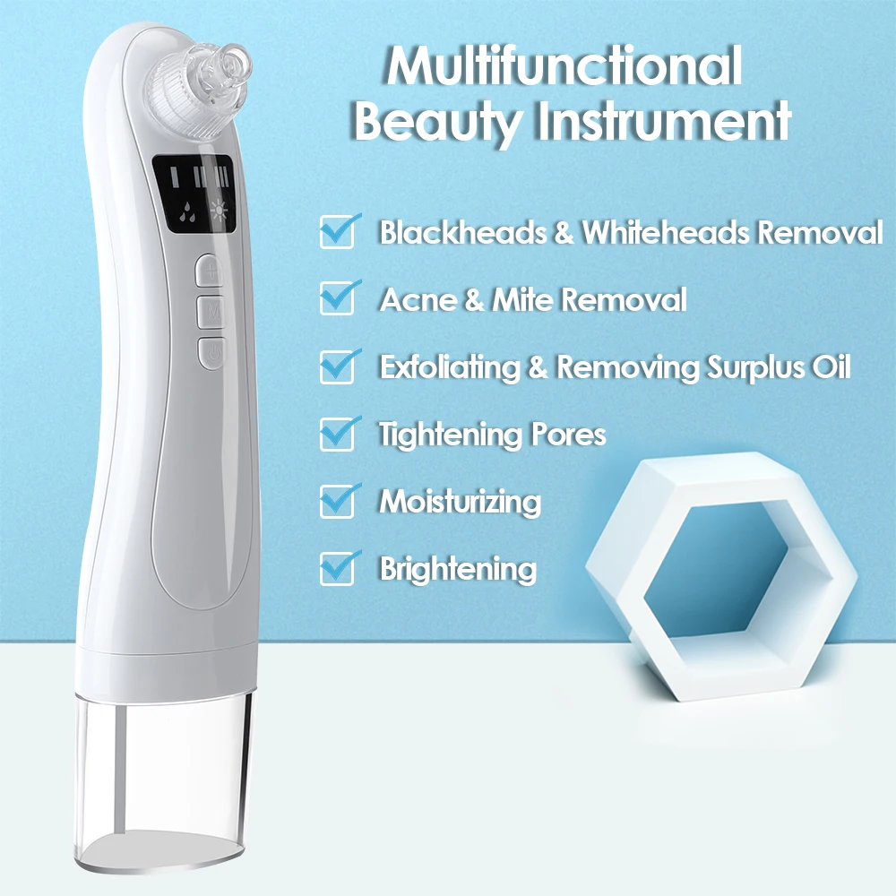 1. Бутылку с раствором можно разобрать и промыть, что безопасно и гигиенично. 2. Четыре разные всасывающие головки для разных участков лица: Маленькая всасывающая головка типа A.S, обычное всасывание, подходит для очистки и обслуживания цикла t-zone; B.S-type большая всасывающая головка, сильное всасывание, подходит для очистки больших площадей; C. Большая поперечная всасывающая головка, среднее всасывание, подходит для большой площади, чтобы впитывать омертвевшую кожу и черные точки; D. Небольшая поперечная всасывающая головка, подходит для очистки небольших площадей, таких как носовая оврага. 3. Регулируемое трехуровневое всасывание для разных типов кожи: нежная/Средняя/сильная, соответственно, для сухой/смешанной/жирной кожи.