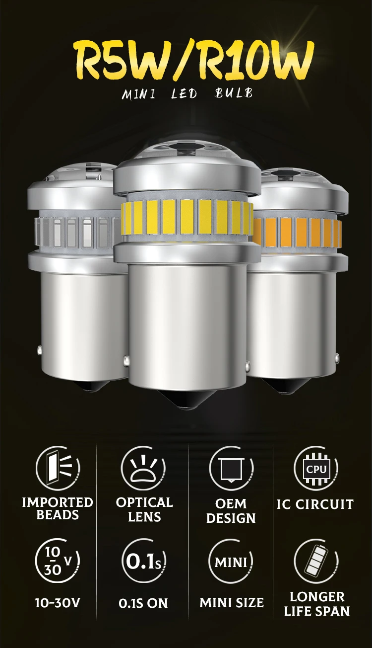 -Мини-размер идеально подходит для замены лампы R5W R10W, просто подключите и играйте.