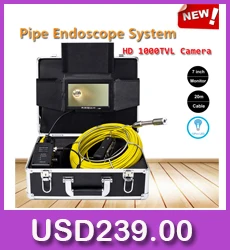 7 "TFT LCD цветной монитор, 20 м, кабель для очистки труб, система контроля слива, диаметр 23 мм, 1000TVL светодиодный Профессиональный видеорегистратор для камеры