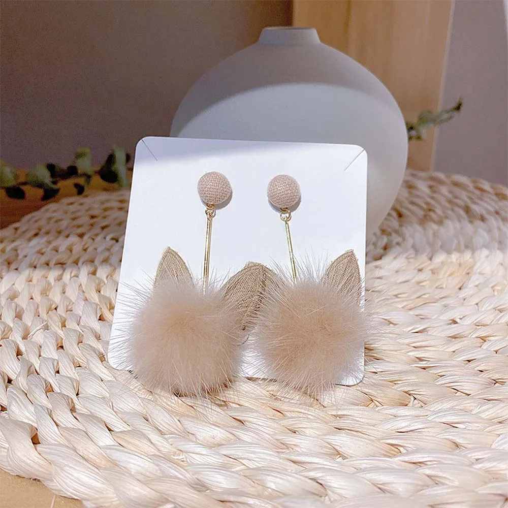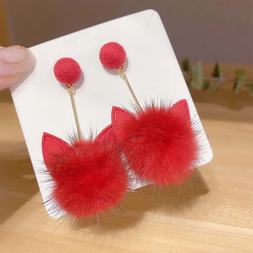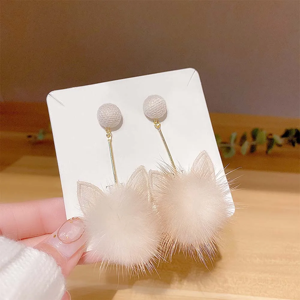 S925 Серебряные корейские зимние модные плюшевые серьги с кошачьими ушками, трендовые висячие серьги