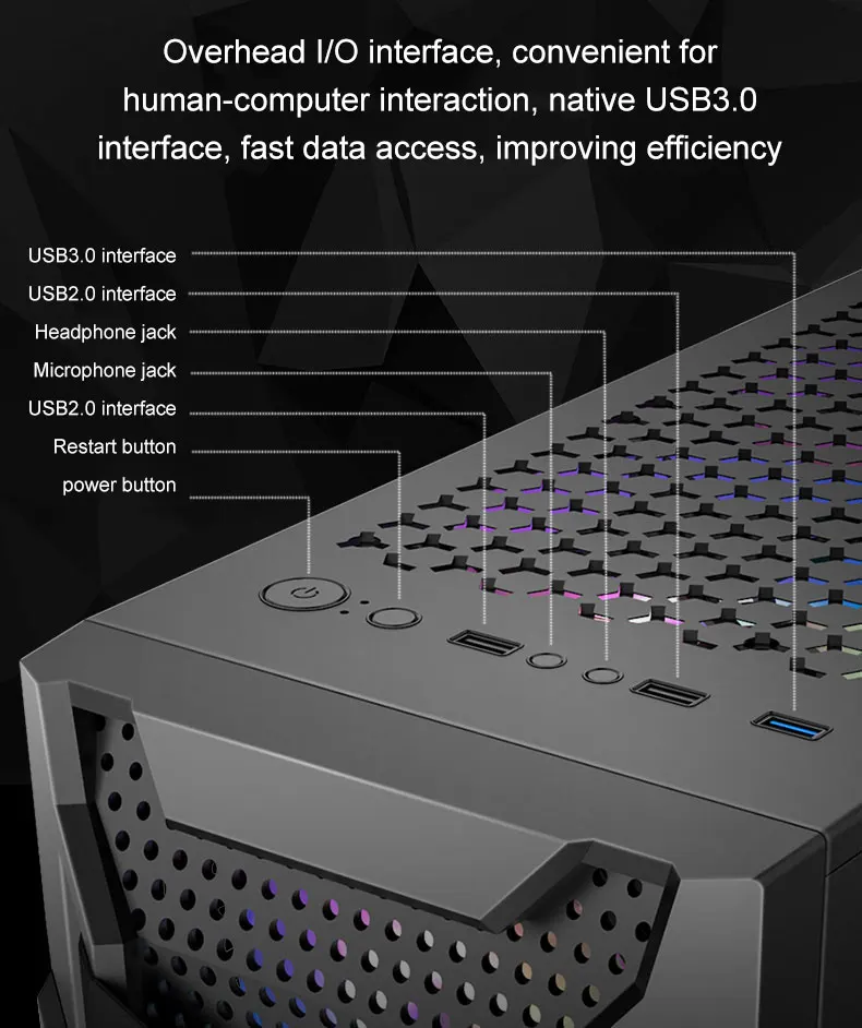 3-панель круглое отверстие дизайн, большие полые, холодный воздух поступает быстро, и вы сможете быстро охлаждения внутри корпуса