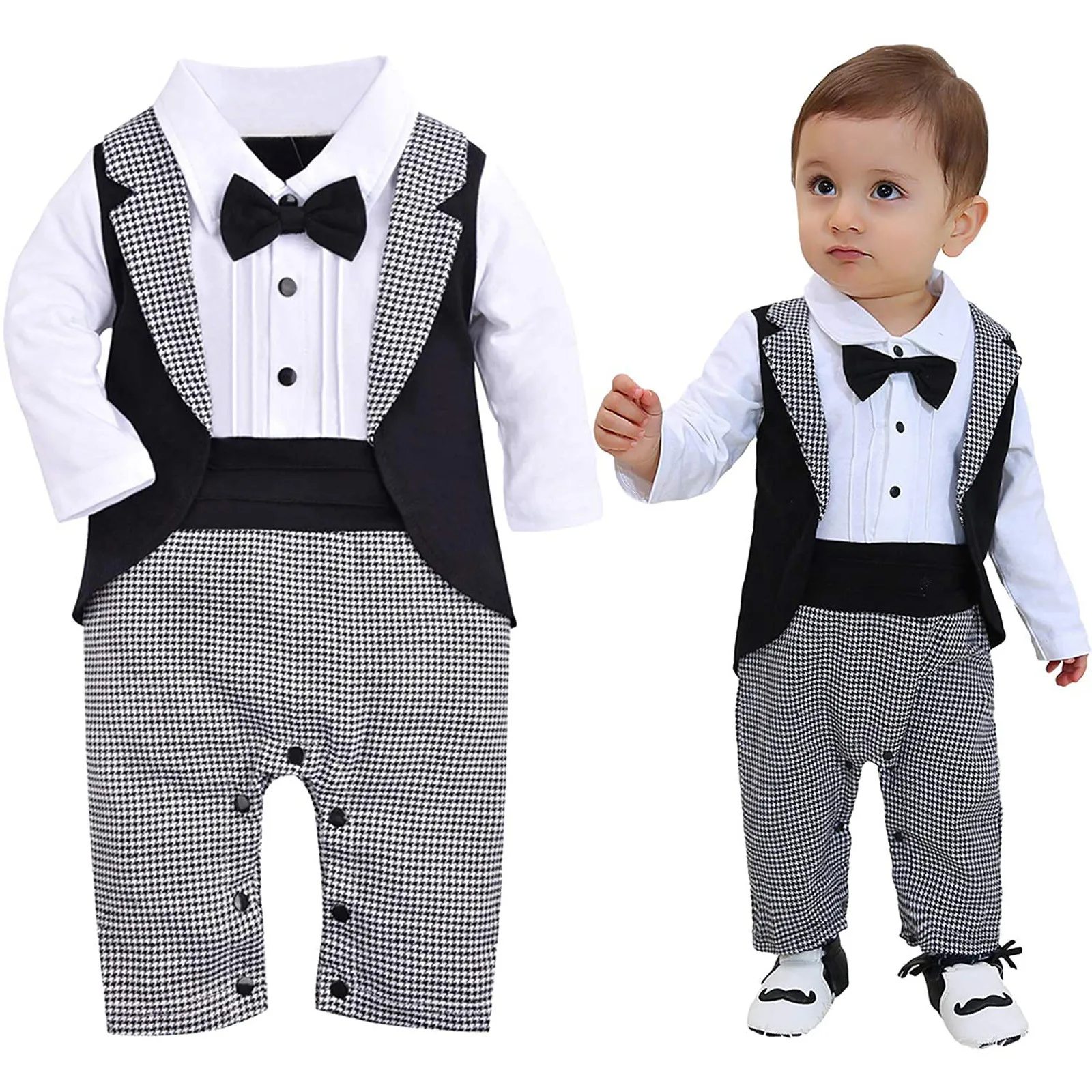 3-18 Months Long sleeve Infant Baby Boys Tuxedo Gentleman Onesie Romper Jumpsuit Wedding Outfits combinaison bebe mamelucos M4