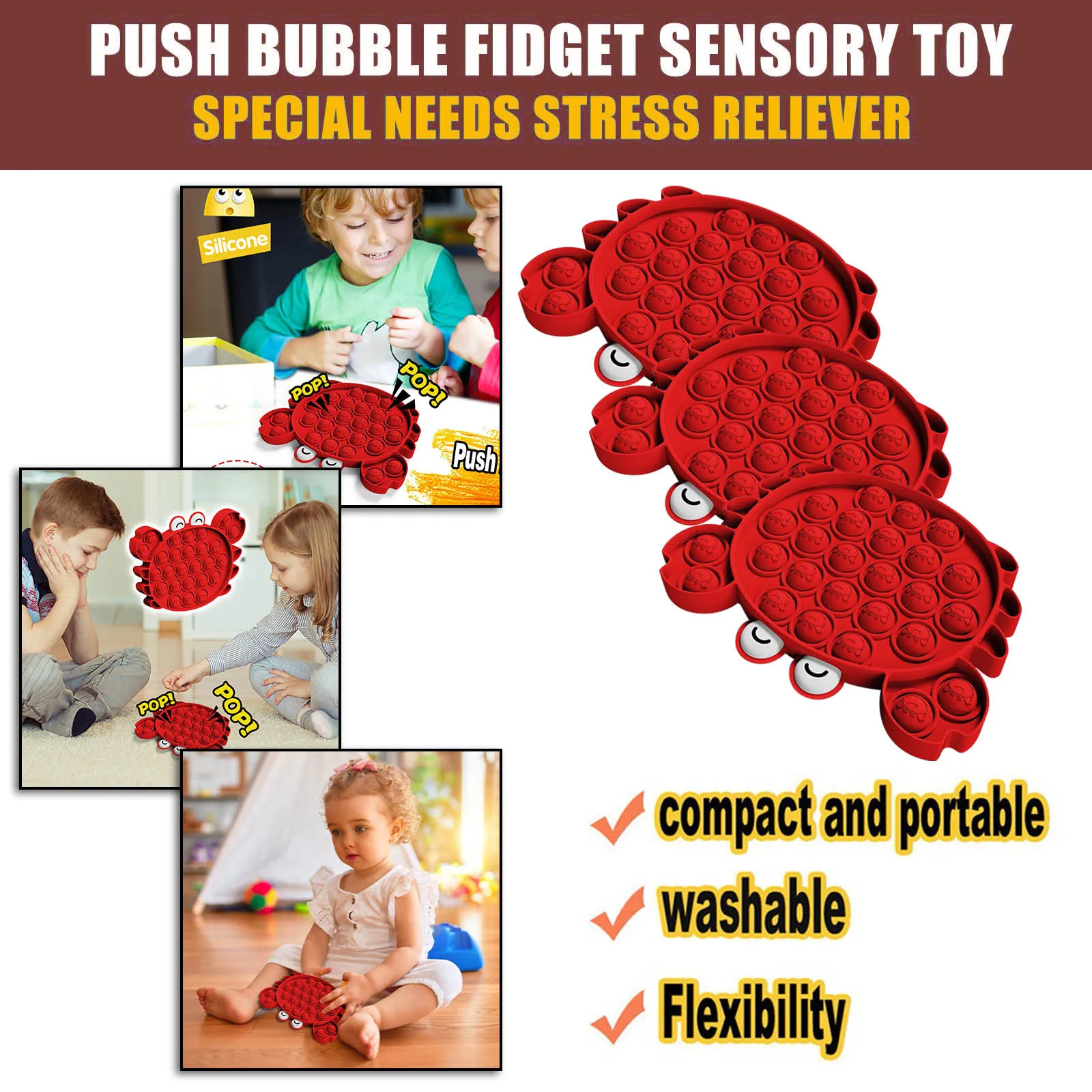 Непоседа игрушки антистресс Забавный Краб пуш-пузырь поп Непоседа сенсорная игрушка для аутистов особые потребности снятие стресса взрослый ребенок подарок сжималка 4