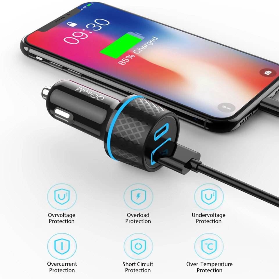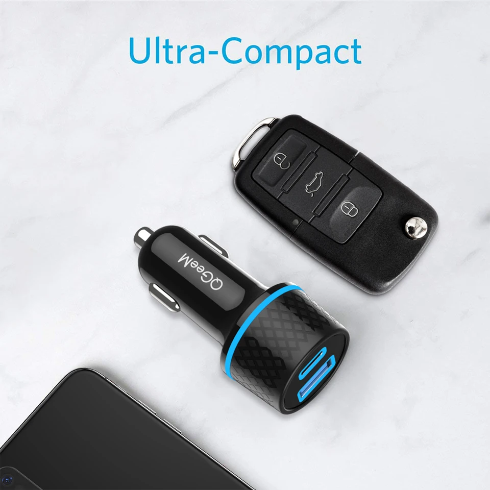 4.[компактный дизайн] автомобильное зарядное устройство QGeeM smart usb PD меньше, чем кредитная карта, и мягкий синий светодиодный свет полезен для поиска usb-розеток и безопасного вождения в темноте.