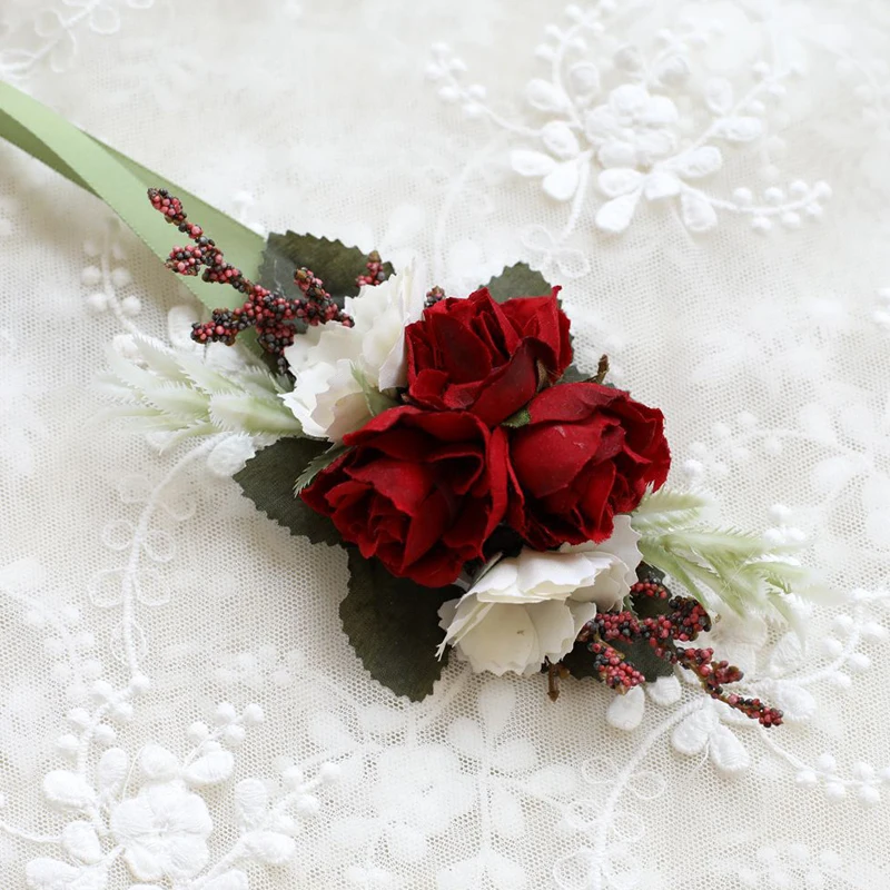 Тип: наручный цветок/корсаж включает в себя: 1 шт. наручный цветок/1 шт. корсаж/1 Набор наручный цветок и корсаж Материал: шелк + сатин Размер: О 11x 7 см/4,33 * 2.75in Упаковочный лист: 1 шт. цветок на запястье/1 шт. корсаж/1 Набор наручные Цветок для волос и корсажи