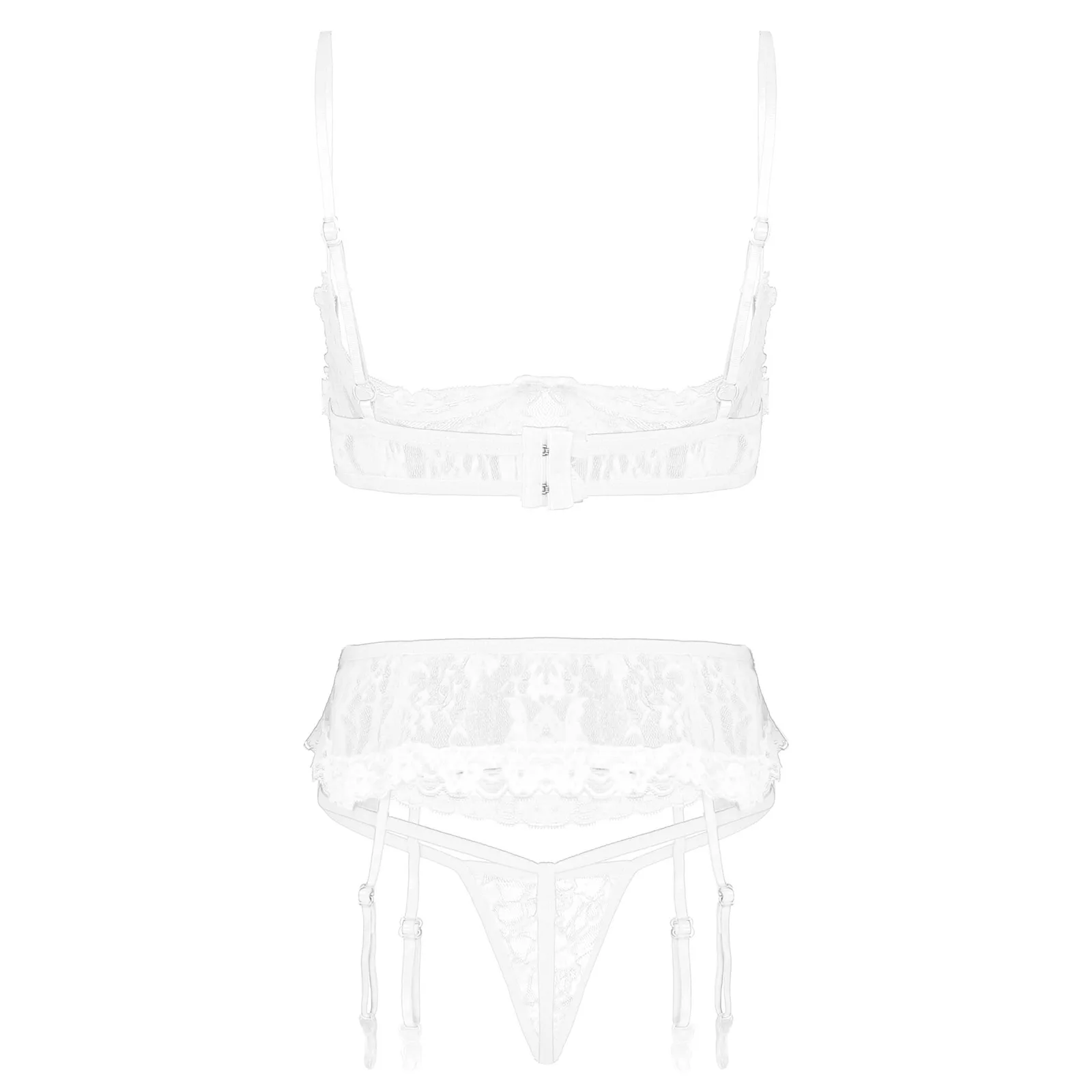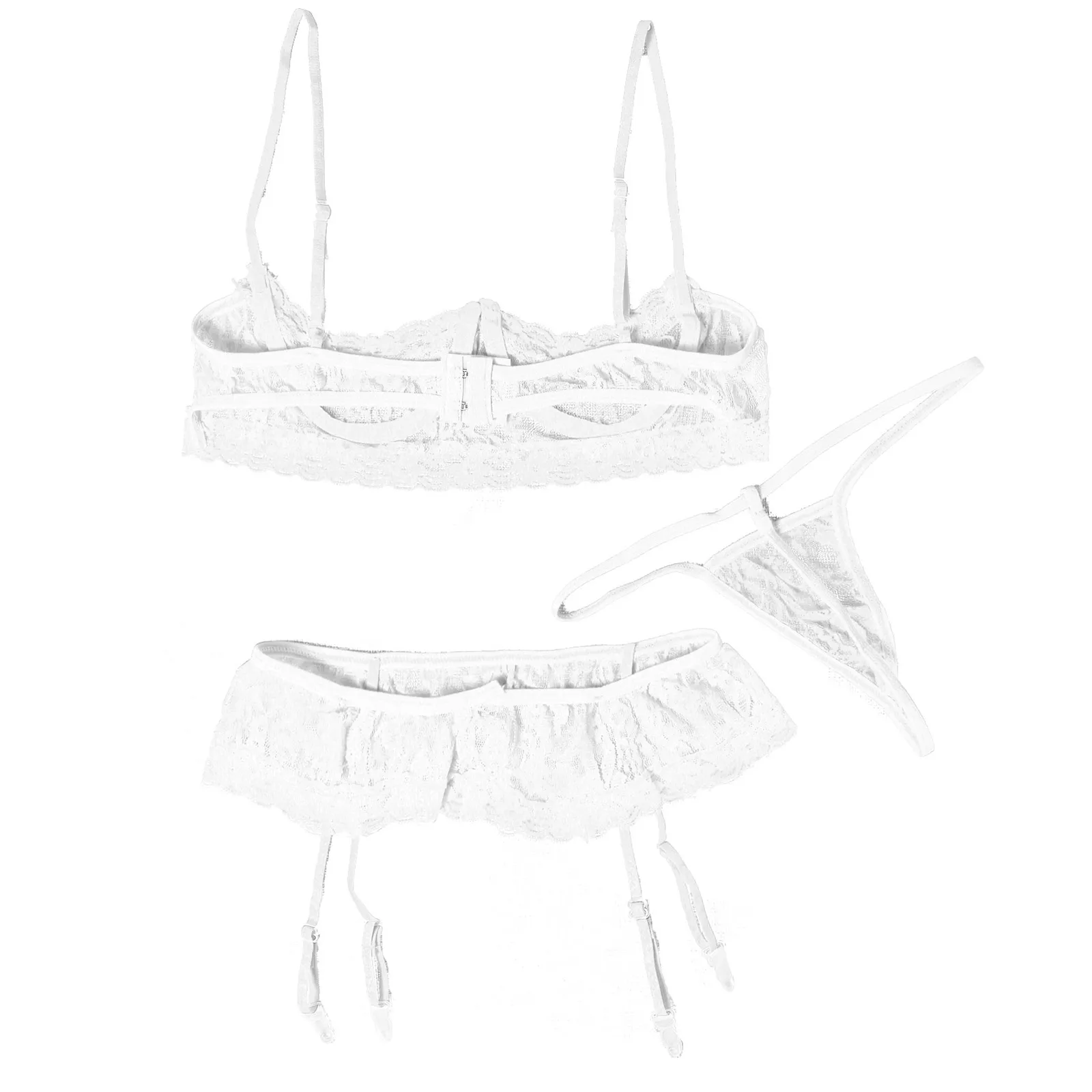 Женское прозрачное кружевное нижнее белье из трех предметов, нижнее белье, одежда для сна.