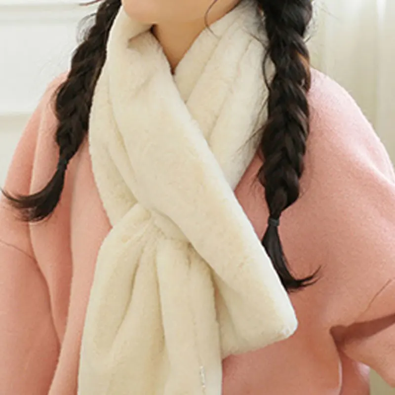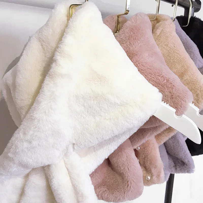 Женская зимняя плотная однотонная плюшевая шаль из искусственного кроличьего меха с перекрестным воротником