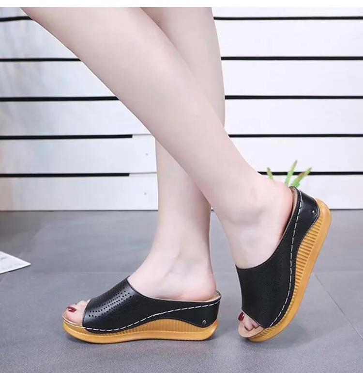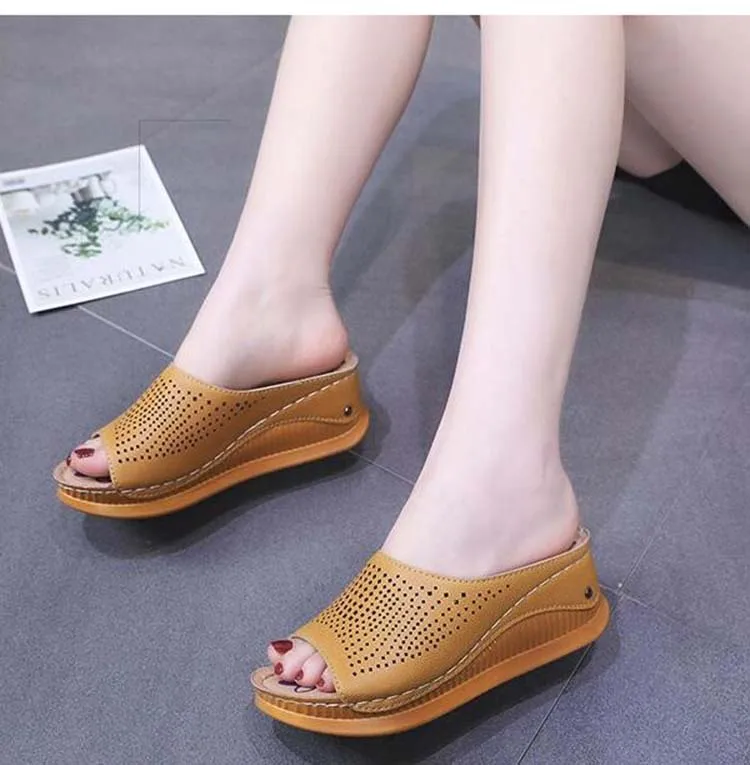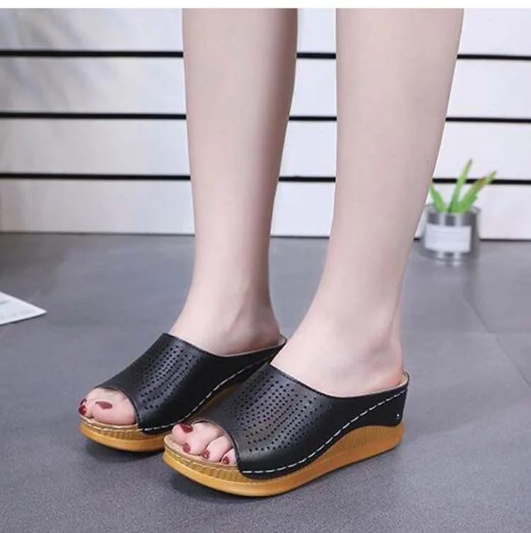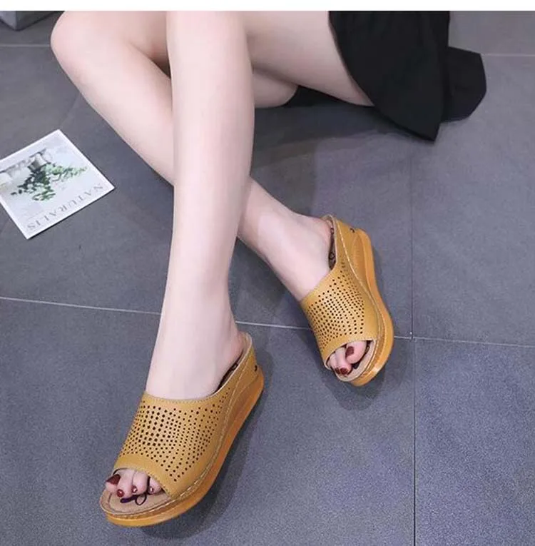 Женские сандалии на высокой платформе, украшенные бисерными нитями с мягкой подошвой; Обувь на танкетке; Для женщин; Туфли-лодочки; Сандалии на высоком каблуке; Женские туфли в стиле ретро; Женские сандали, шлепанцы размер 43