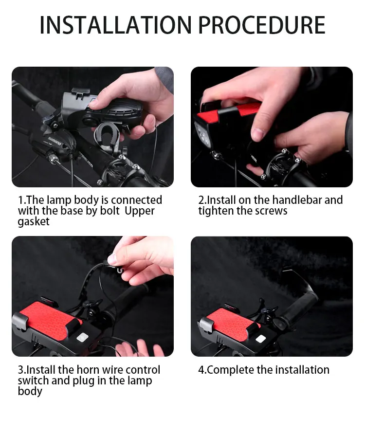 Мини велосипедный светильник 3 в 1, многофункциональный велосипедный светильник, зарядка через USB, динамик, передний светильник для телефона, велосипедный светодиодный светильник, аксессуары