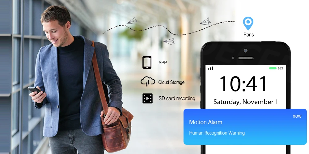 Автоматически обнаруживает движущиеся предметы и срабатывает сигнал тревоги при возникновении опасности. Эффективно Защитите ваш дом и бизнес от потери, вызванной вторжением. Если обнаружится подозрения, вы получите оповещение в режиме реального времени.