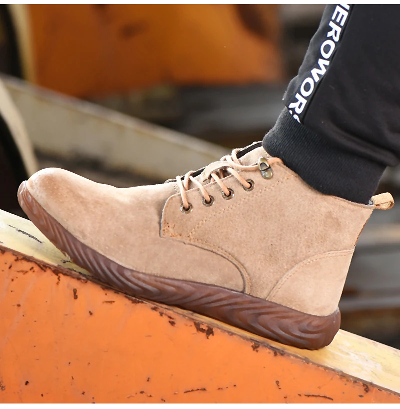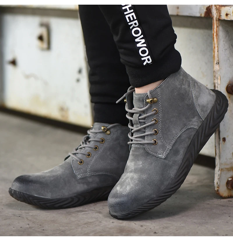 Мужская Рабочая обувь из свиной кожи, нескользящая защитная обувь для сварки, мужская обувь со стальным носком, Нескользящие рабочие ботинки, устойчивая к проколу обувь для мужчин