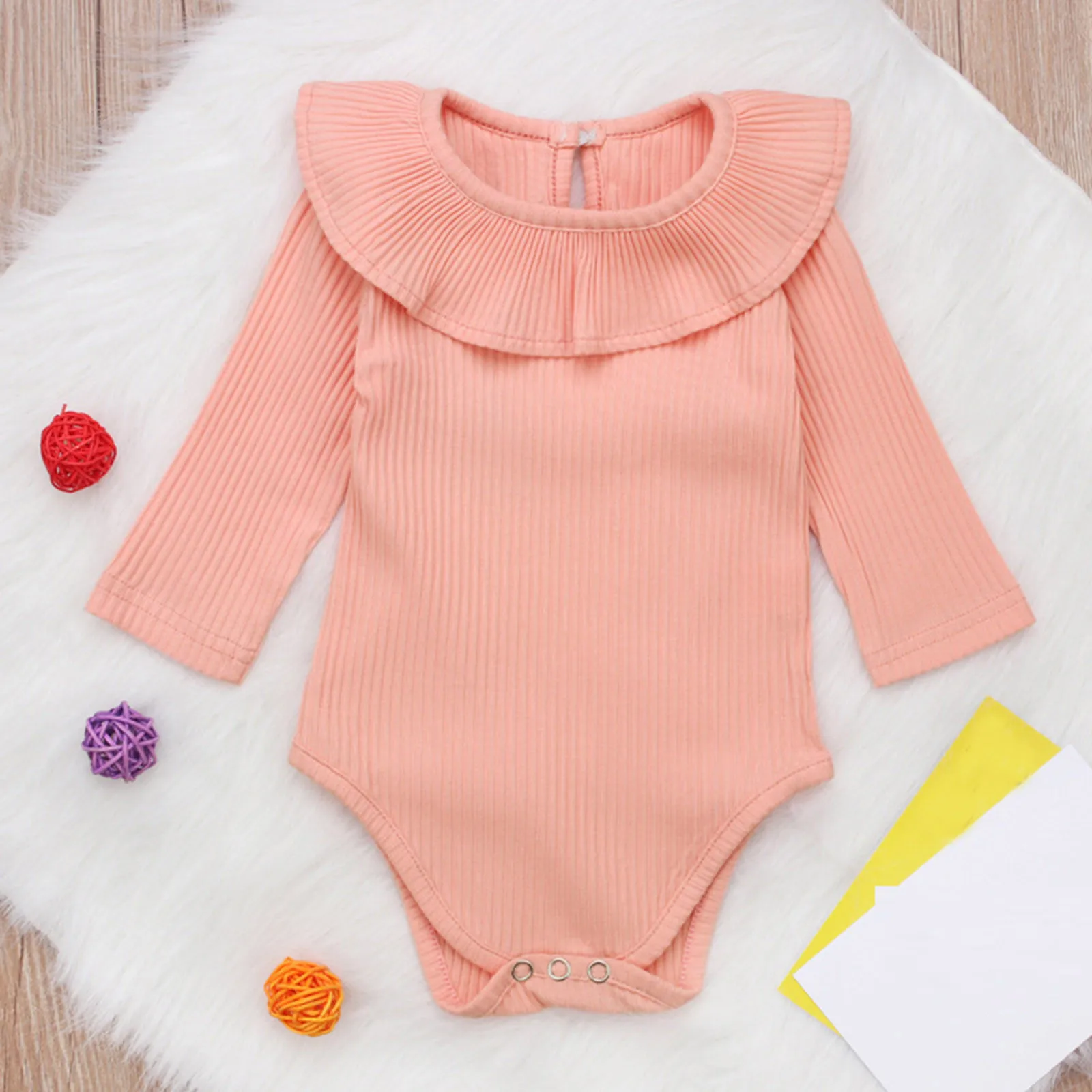 Корейский теплый комбинезон в полоску для маленьких девочек 0-18 месяцев, однотонные Ползунки с оборками, одежда для маленьких девочек, M4