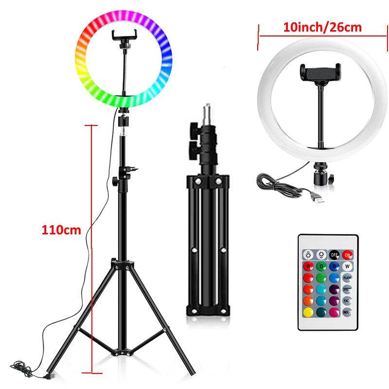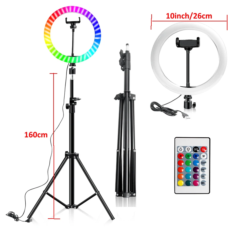 Цветной светодиодный RGB кольцевой светильник 10 дюймов 160 см с подставкой Радужный кольцевой светильник USB с телефоном