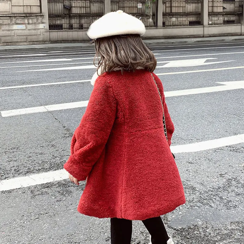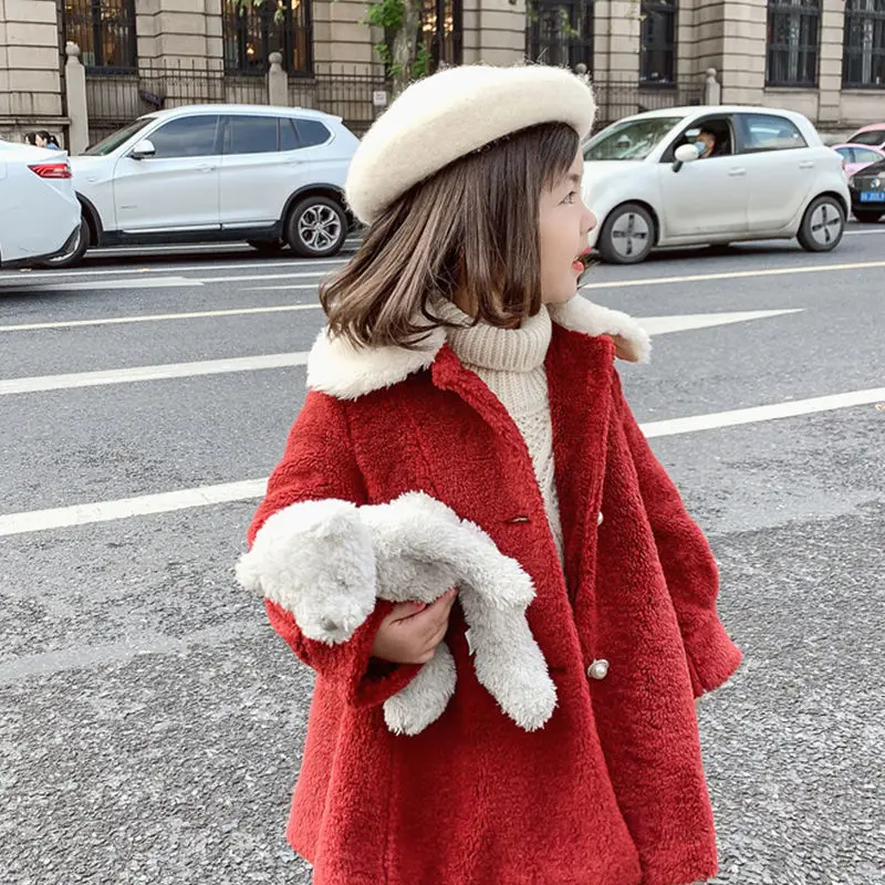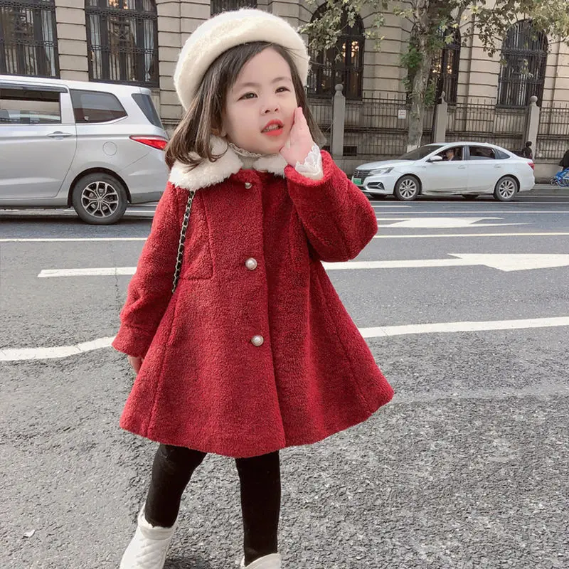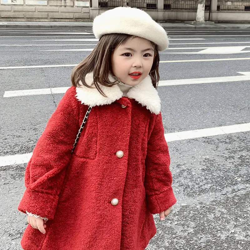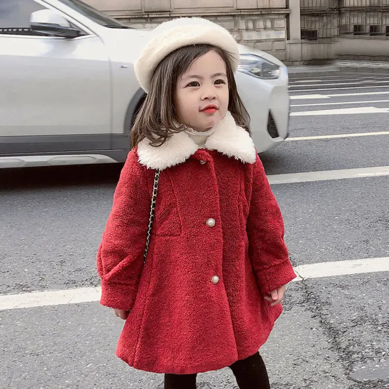 Зимняя куртка для девочек; Пальто; Детская парка из овечьей шерсти; Осенняя одежда для маленьких девочек; Детская хлопковая верхняя одежда на подкладке с жемчужинами и пуговицами; 6, 10