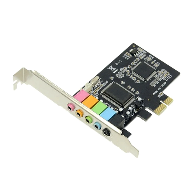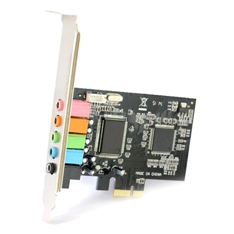 Принять CMI8738 5,1 многоканальным звуком эффект чип PCI-e звуковая карта принимает PCI-Express Слот шины, поддерживает 6-канальный объемный звук выход, поддерживает DLS фонотеке технологии, поддерживает A3D 1,0 и DS3D, И совместим со звуковыми эффектами DirectSound 3D и EAX.