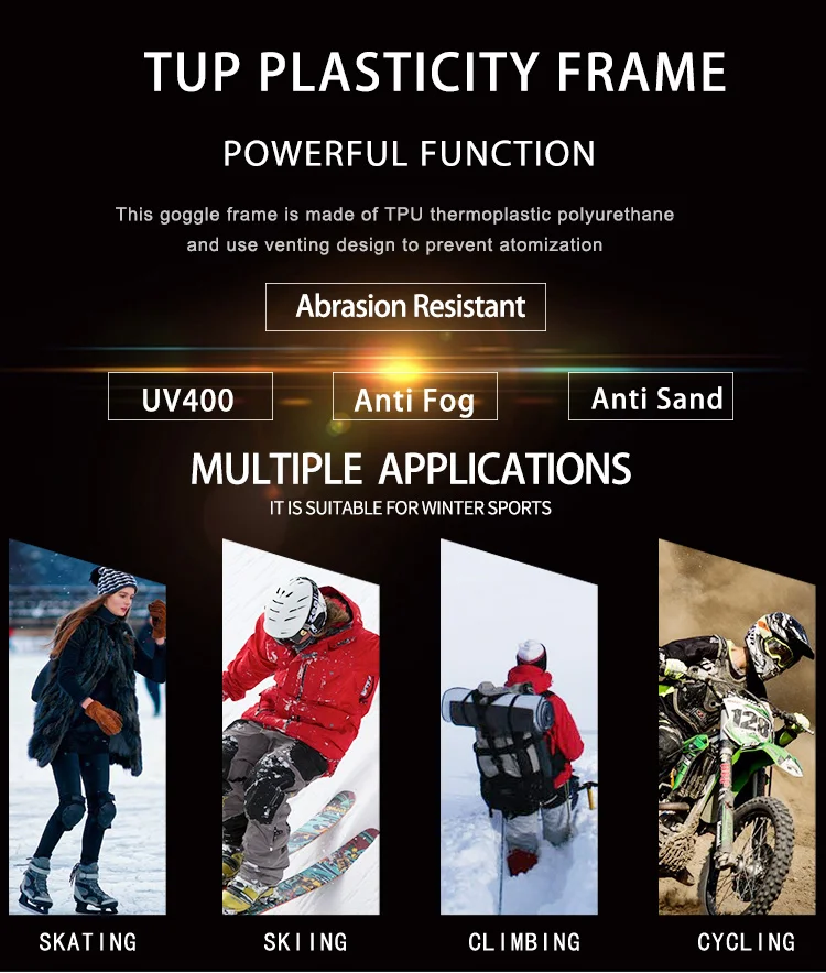 Описание: Эта оправа goggle изготовлена из термопластичного полиуретана ТПУ и использует вентилирующую конструкцию для предотвращения распыления. Линзы из поликарбоната устойчивы к царапинам, ударостойкие, устойчивые к ультрафиолетовому излучению, противотуманные и ветрозащитные. Плюс регулируемые резинки для различных типов лица и головы. Подходит для зимних видов спорта: катания на лыжах, катания на коньках, сноуборде, походов и езды на открытом воздухе. Особенности: 1. Оправа TUP Plasticity-легкая, прочная и износостойкая, подходит для различных форм лица 2. Высококачественные поликарбонатные линзы-сферические и износостойкие; Анти-туман, держит ваше видение чистым 3. Плавающая пена-уменьшает давление и соответствует вашему лицу, обеспечивает бесшовную посадку 4. Регулируемый ремешок-широкий ремешок с системой регулировки обеспечивает плотное удобное прилегание 5. Несколько вентиляционных отверстий-вентиляционные отверстия на верхней и нижней части очков сохраняют воздух и борются с туманом во время езды Посылка включает в себя: 1 шт. X очки
