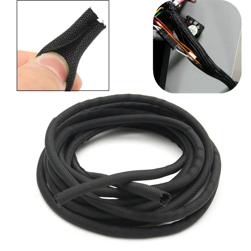 5 мм 300 см длина черный огнестойкий антикоррозийный самообертывающийся плетеный провод нейлоновый рукав