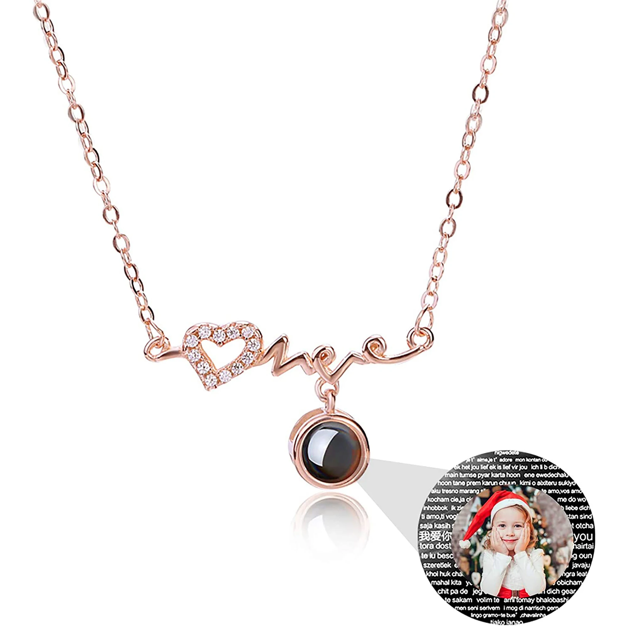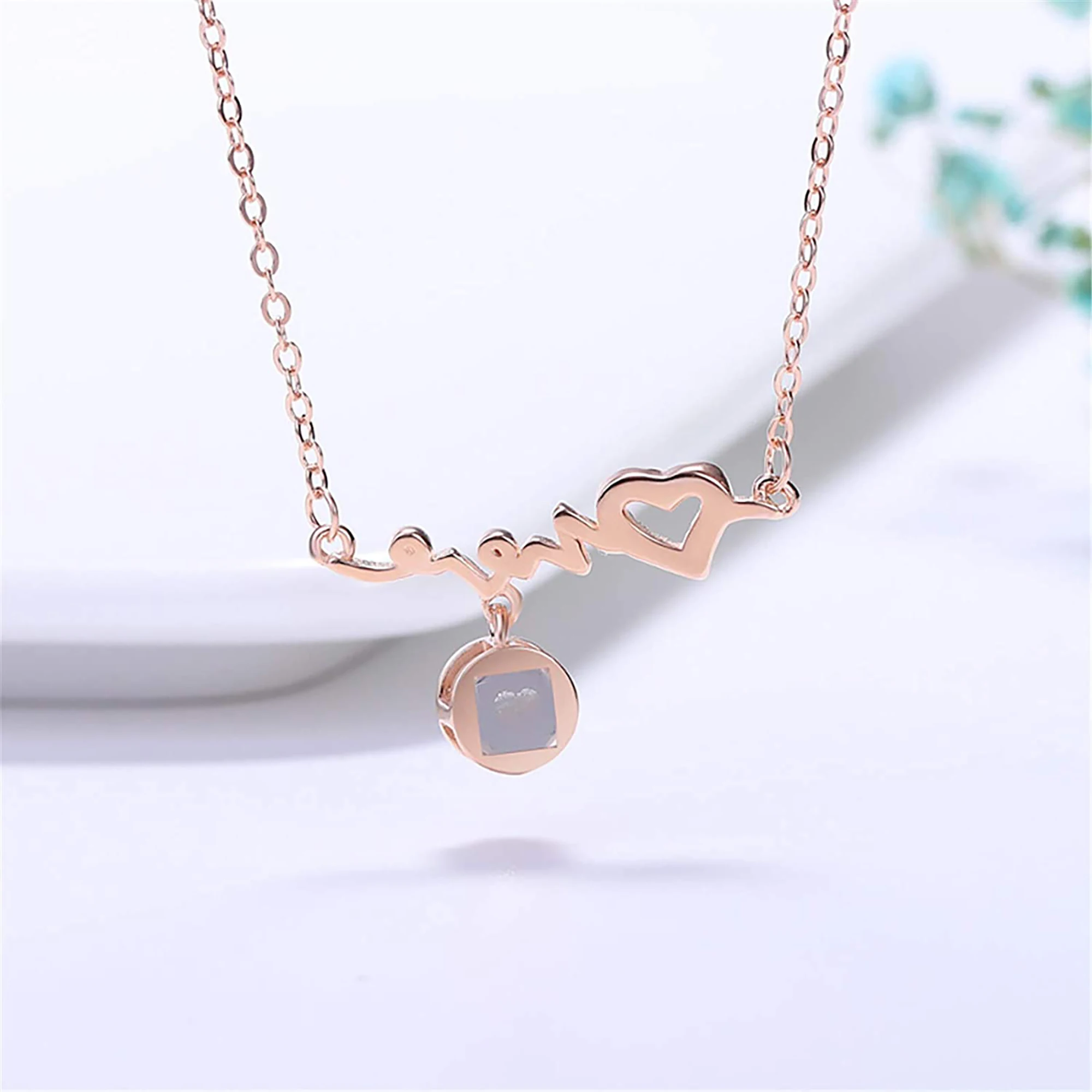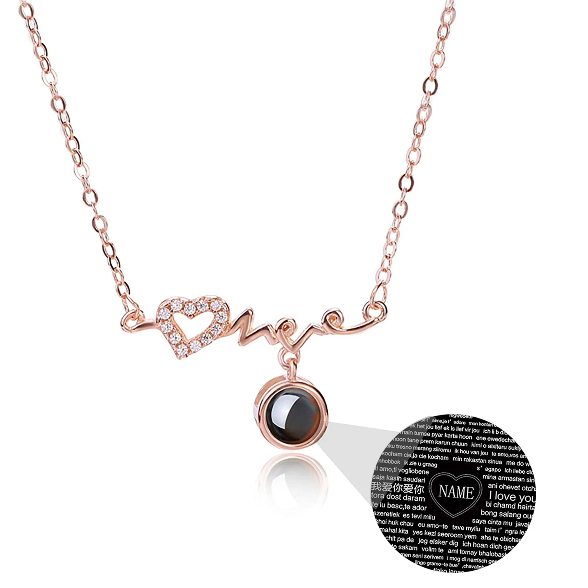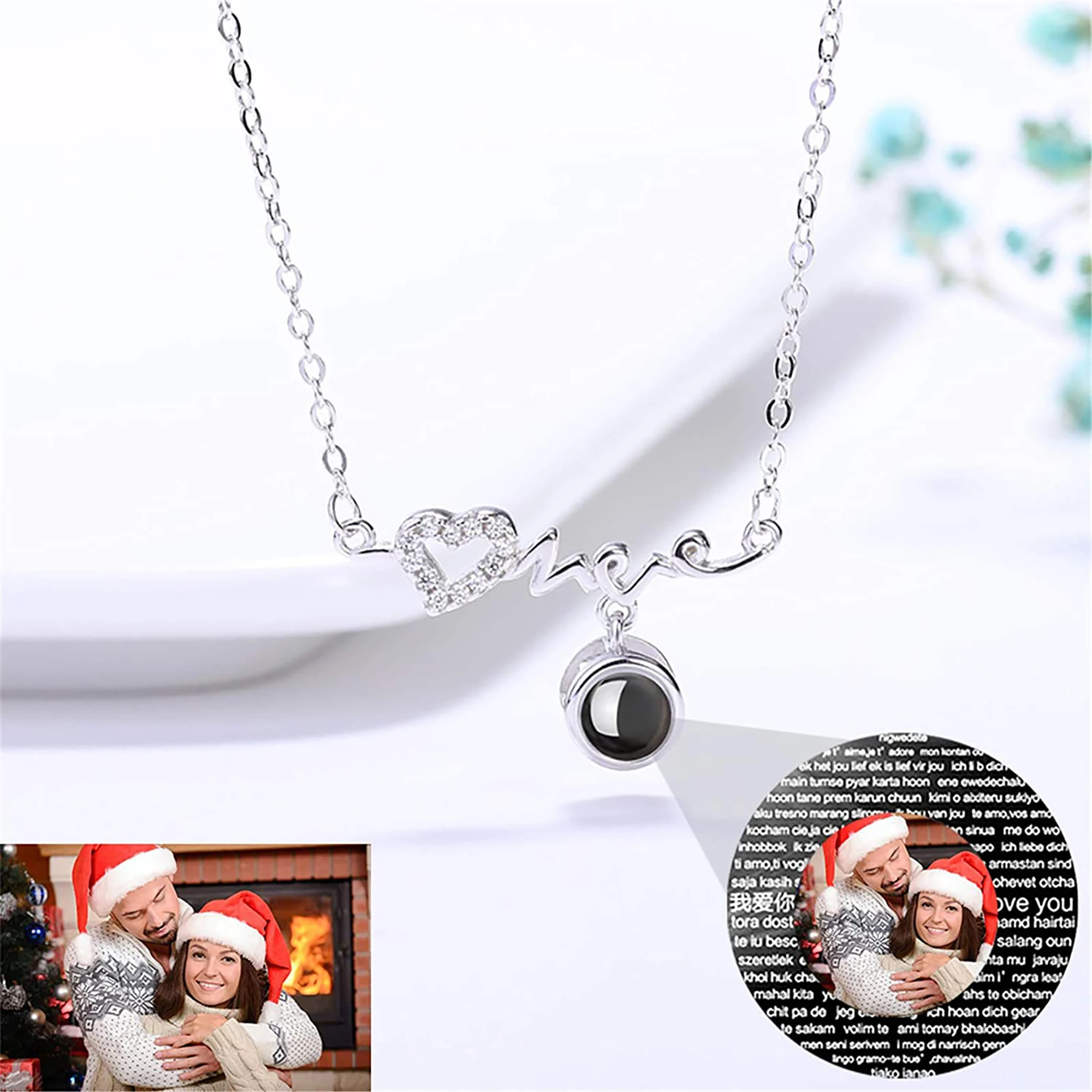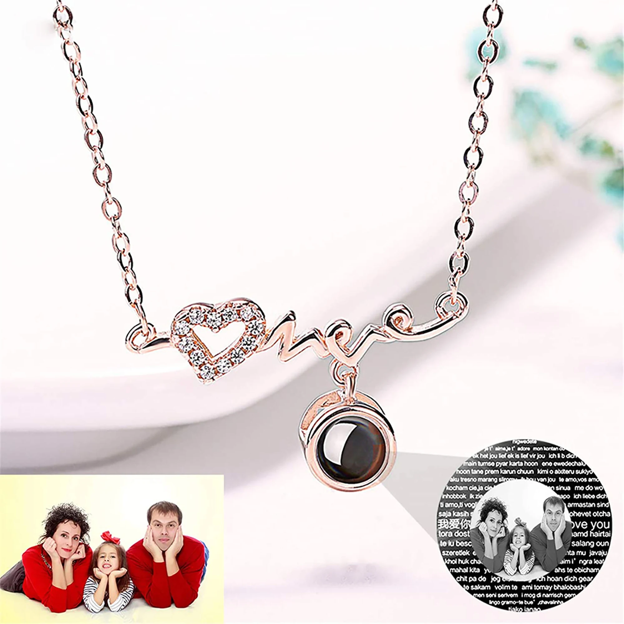 Стиль A: черно-белое фото Стиль B: Полноцветная фотография Стиль C: название Стиль D: только 100 языков, которые я люблю тебя Материал: серебро 925 пробы Длина цепочки: О-образная цепочка 40 + 5 см Цвет: серебристый, розовое золото Подходит для Дня Святого Валентина, юбилея, дня рождения и других праздников и других праздничных подарков