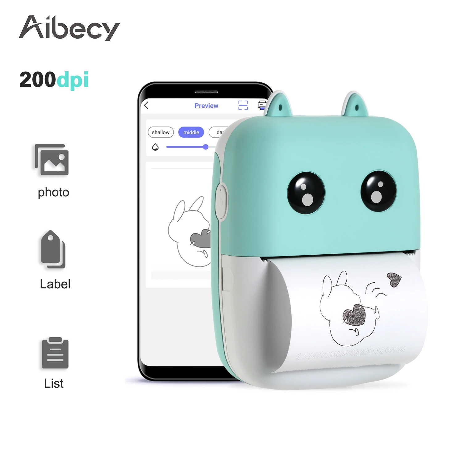 Aibecy Мини карманный термальный принтер 58 мм беспроводной BT принтер 200 точек/дюйм с 1 рулонная Тепловая бумага для печати фото Памятка список этикеток Журнал Планировщик совместим с Android iOS смартфон