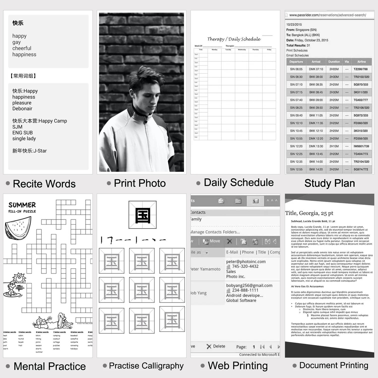 Многофункциональность: Мини карманный принтер, который может помочь распечатать ошибки, рабочие планы, списки покупок, фотографии путешествий, журналы и т. Д. Печать одним нажатием для повышения эффективности работы и учебы.